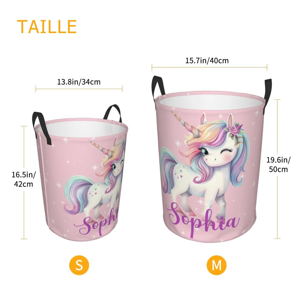 Ce panier de rangement est orné d'un motif fantaisiste et charmant de licorne. Personnalisez-le avec le nom de l'enfant pour une touche spéciale.