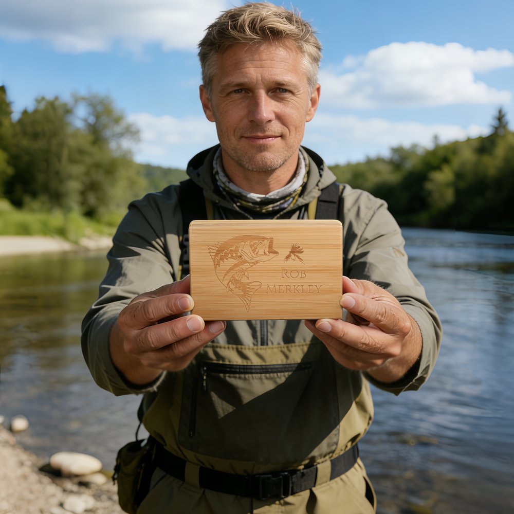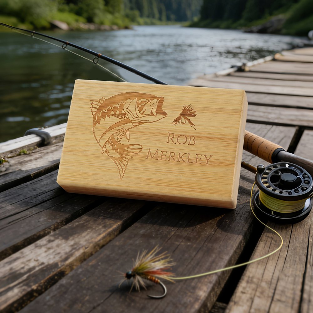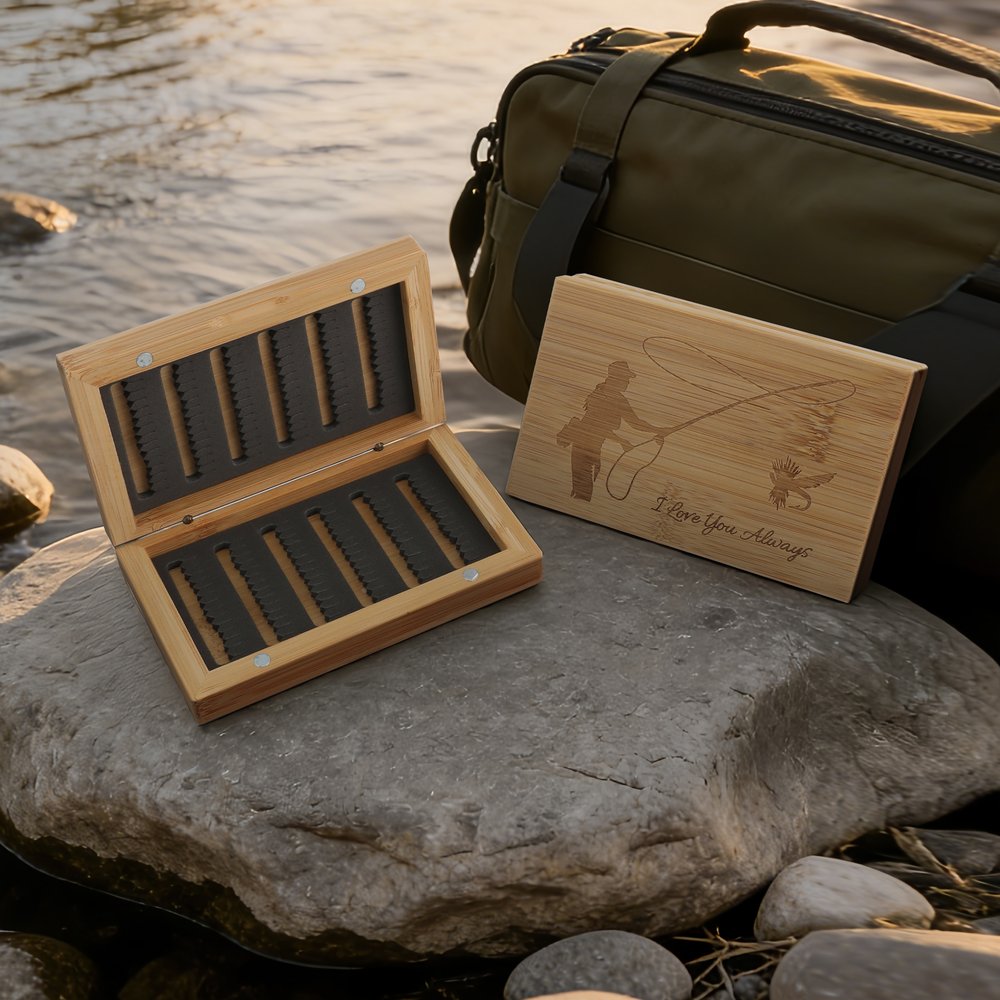 Ce coffret de pêche à la mouche allie harmonieusement le bambou naturel à une esthétique sur le thème de la pêche, combinant l'esprit de la pêche à la mouche à la beauté de la nature. Le couvercle présente une sélection de motifs, dont un crâne, une silhouette de pêcheur ou une mouche, et peut être personnalisé avec un texte. Chaque détail reflète une véritable passion pour la pêche à la mouche. À l'intérieur, un système de fentes en zigzag cloisonnées maintient les mouches en place, évitant ainsi qu'elles ne s'emmêlent et ne s'abîment. Ce n'est pas seulement un organisateur de matériel de pêche professionnel, c'est aussi une pièce de collection pleine de caractère.