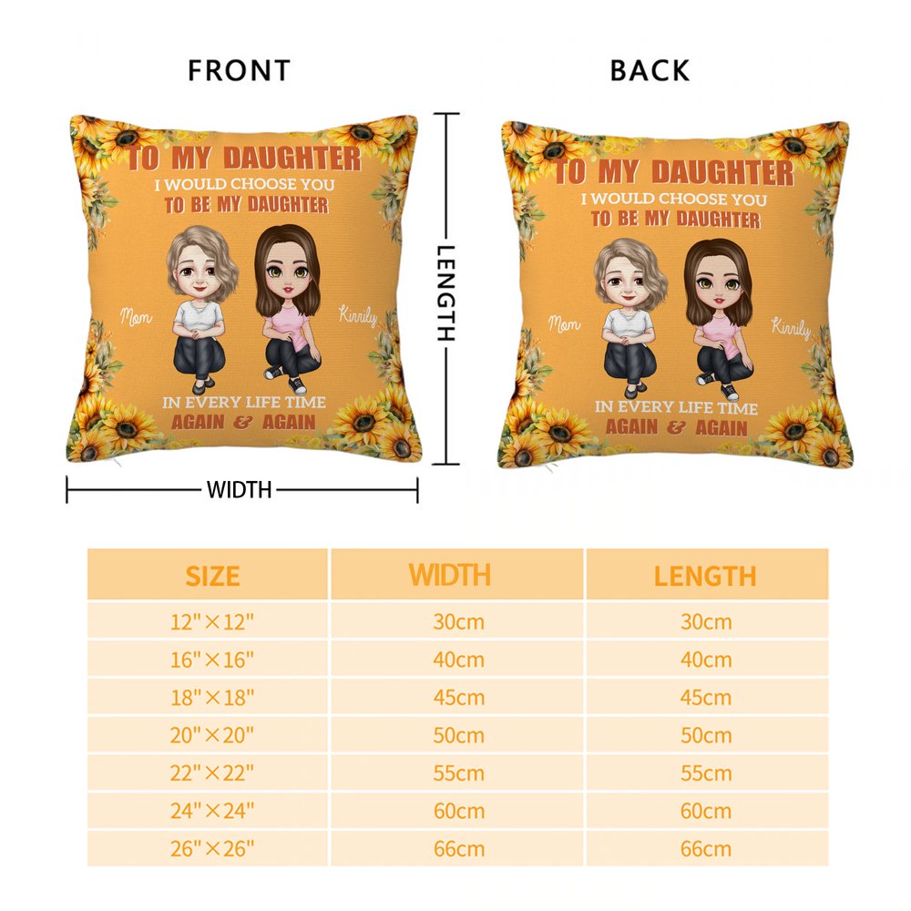 Plus qu'un simple coussin, il s'agit d'une lettre d'amour intemporelle. Nous avons mélangé de manière harmonieuse l'aveu le plus sincère - " Je te choisirais pour être ma fille, dans chaque vie, encore et encore " - avec des motifs floraux et d'adorables dessins animés. Vous pouvez même le personnaliser avec votre nom, pour que chaque câlin soit unique, chaleureux et personnel.