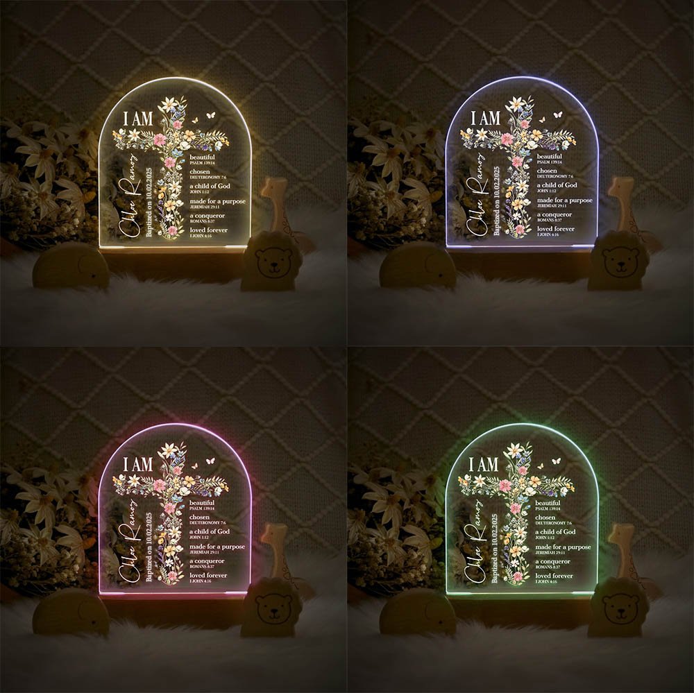 Illuminez le parcours de foi de votre enfant avec cette veilleuse ! Cette veilleuse enchanteresse est ornée d'une croix florale magnifiquement conçue, avec des fleurs vibrantes et délicates, symbolisant les nouveaux départs et l'amour divin. La lumière LED ajoute une lueur chaude et douce, parfaite pour créer une atmosphère sereine et réconfortante dans n'importe quelle pièce.