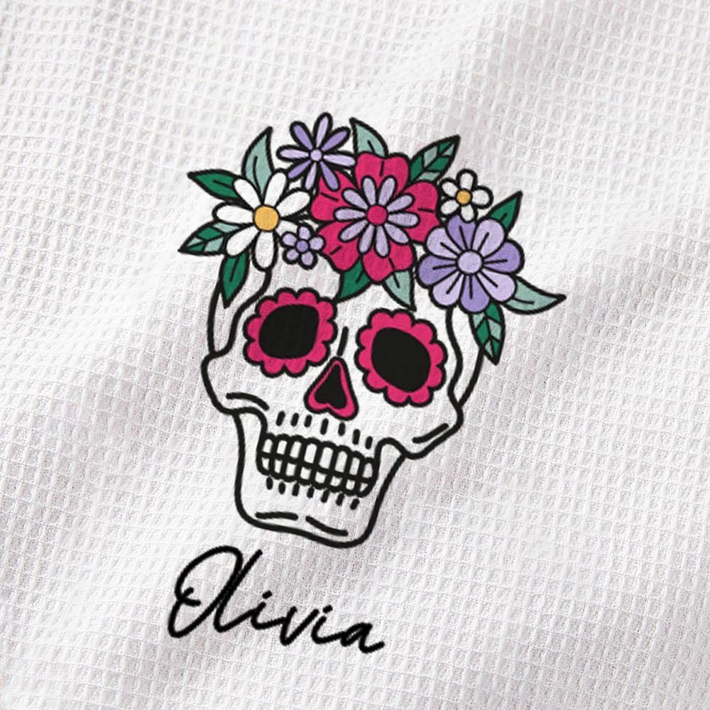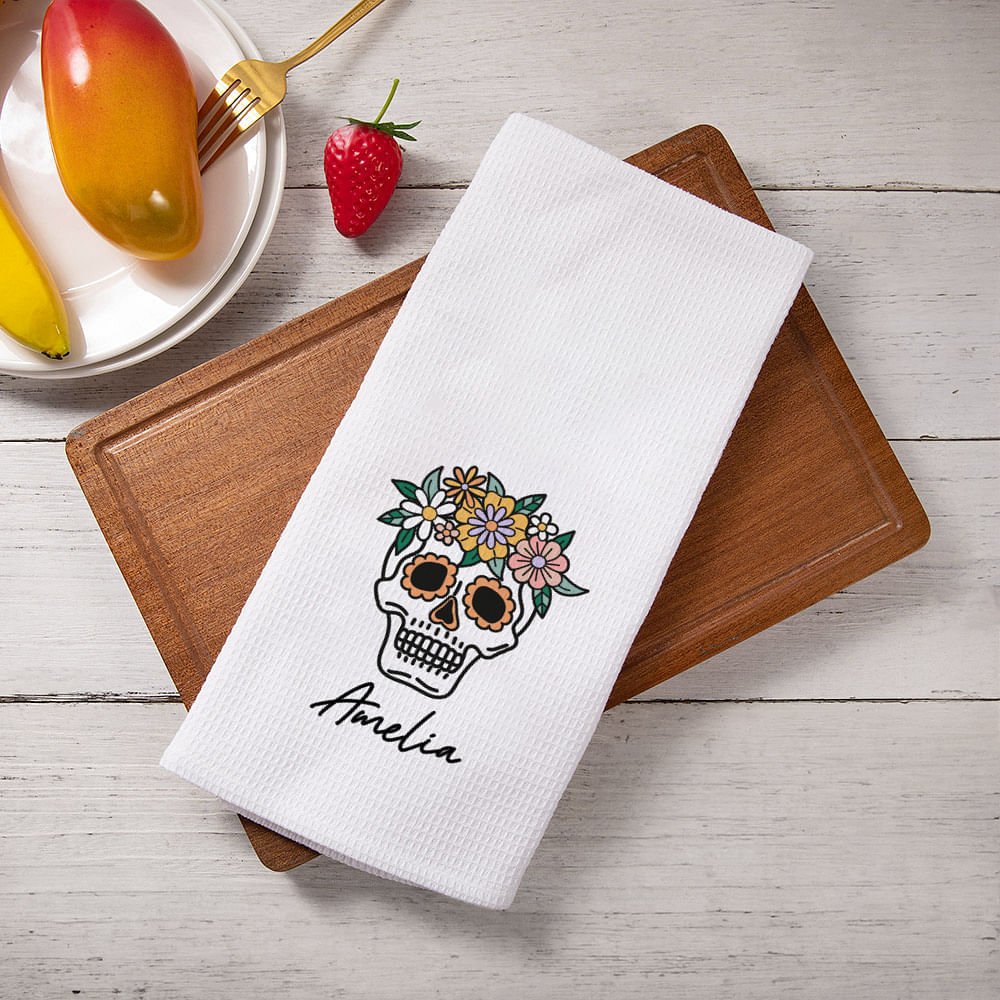 Ce torchon s'inspire de l'élément unique du Jour des Morts - la tête de mort en sucre - et dégage une forte atmosphère festive. Vous pouvez personnaliser un nom pour rendre ce torchon plein de personnalité et de cœur.