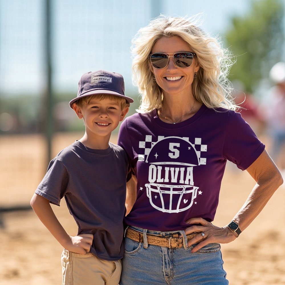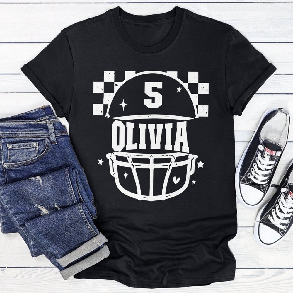 Casque de football à carreaux personnalisé T-shirt Sweatshirt Hoodie avec nom et numéro à porter quotidiennement le jour du match Cadeau de Noël pour les joueurs de football Lovers