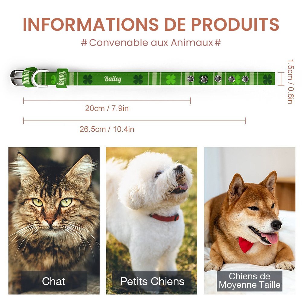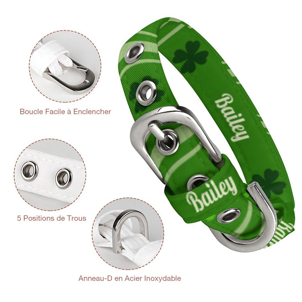Collier Réglable pour Chien Chat Boucle en Métal Accessoire Personnalisé avec Nom Cadeau de St Patrick pour les Propriétaires et Amoureux des Animaux