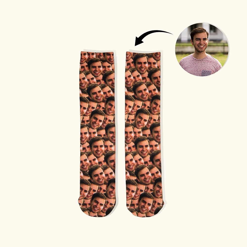 • Les chaussettes amusantes personnalisables sont fabriquées en polyester de haute qualité qui est doux, confortable et extensible. Les dimensions sont de 40 cm (L). Unisexe, convient à la plupart des hommes et des femmes. Téléchargez simplement une photo de votre animal de compagnie ou de votre visage humain et le concepteur placera l'image dans un motif répétitif, il n'est donc pas nécessaire de télécharger plusieurs images. Les chaussettes photo sont faites sur mesure pour correspondre au visage de vous-même, de vos amis, de votre famille ou de vos animaux de compagnie. Parfait pour vos amis et votre famille à Noël, Thanksgiving, anniversaire, Halloween, Saint-Valentin.