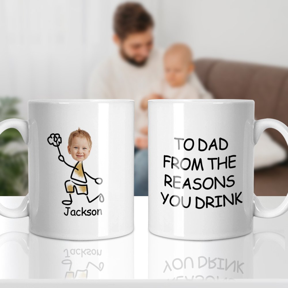 Ce mug avec un dessin à la main est un cadeau parfait pour la fête des pères pour papa ou grand-père. C'est un geste réconfortant et humoristique qui montre l'amour et la créativité de ses enfants.