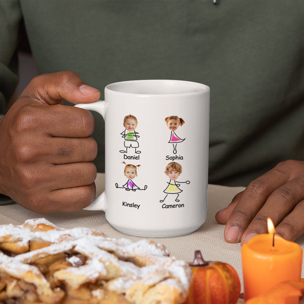 Tasse en Céramique Blanche Personnalisée avec Noms et Photos des Enfants Mug 330/450ml Cadeau de Fête des Pères pour Papa Famille