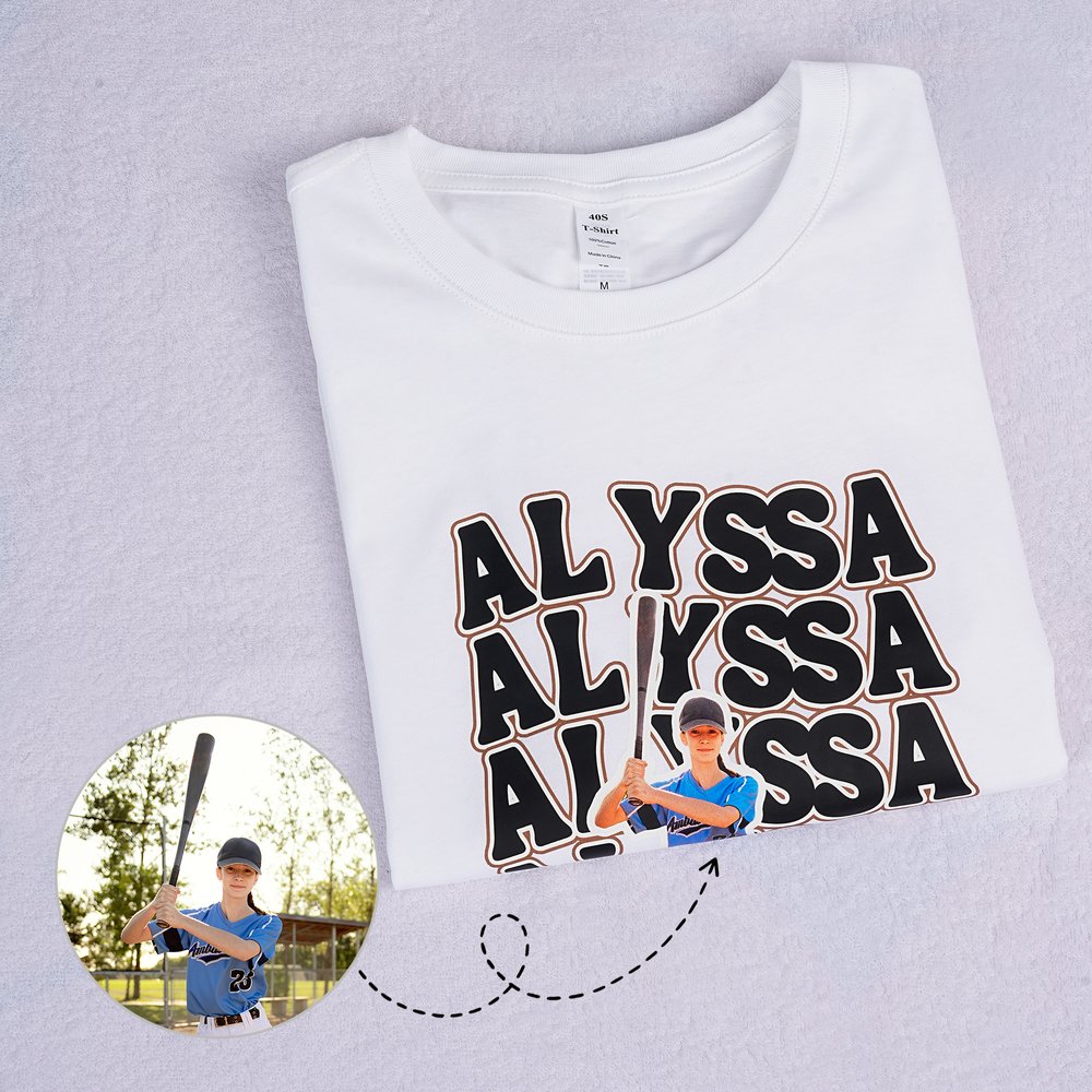 Photo personnalisée Baseball Football Enfant T-shirt adulte Sweatshirt Hoodie avec nom et numéro Anniversaire Sports Game Day Cadeau pour les amoureux du sport