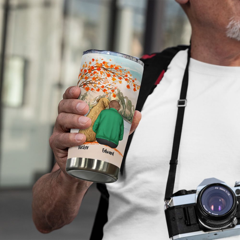 Gobelet personnalisé Fur Mama Papa Maple Tree Love 20oz avec nom Anniversaire Cadeau de Noël pour les amoureux des chiens