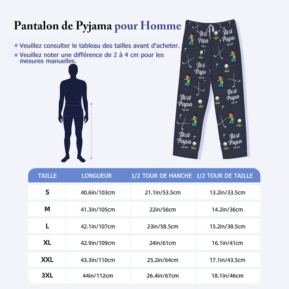 Ce pantalon de pyjama présente un design unique inspiré du golf avec des photos de visage de personnages de dessins animés personnalisables. Parfait pour exprimer l'amour et l'attention, il constitue un cadeau attentionné et sentimental pour les amateurs de golf, ajoutant une touche d'humour et de personnalité à leurs vêtements d'intérieur.