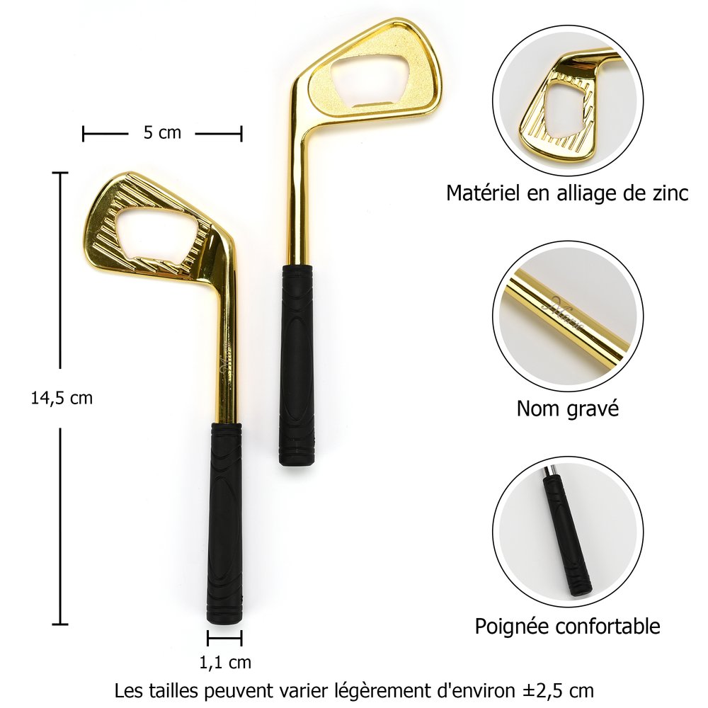 En tant que cadeau, ce décapsuleur s'adapte parfaitement à une variété d'occasions et transmet une touche d'attention. Pour un mari ou un petit ami golfeur, le design du club de golf et la gravure du nom correspondront à ses centres d'intérêt, ce qui en fait un objet de choix pour un usage quotidien. Pour les garçons d'honneur ou les enterrements de vie de jeune fille, un décapsuleur personnalisé est à la fois pratique et mémorable, témoignant de l'amour fraternel. Pour la fête des pères, offrez-le à un père qui aime boire quelques verres ou à un ami amateur de bière. Ce cadeau personnalisé et pratique leur permettra de se sentir choyés et bénis à chaque instant.