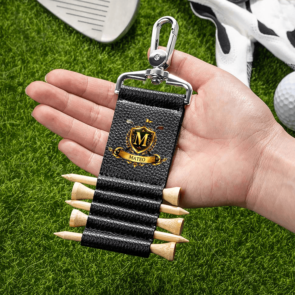 Badge de golf personnalisé en cuir PU avec 5 tees en bambou Cadeau d'anniversaire pour joueur de golf