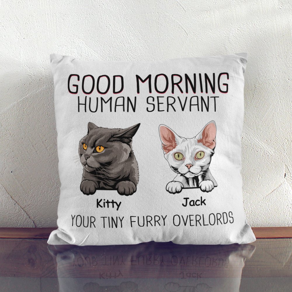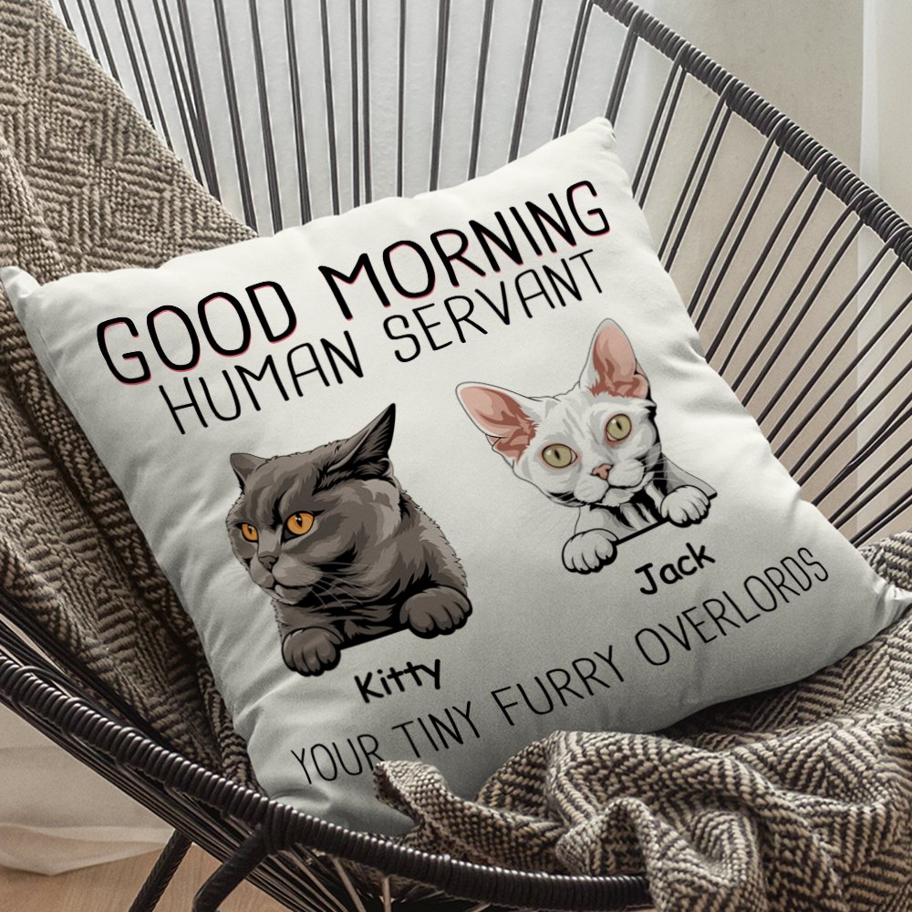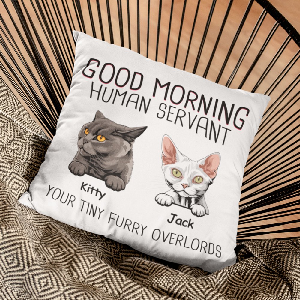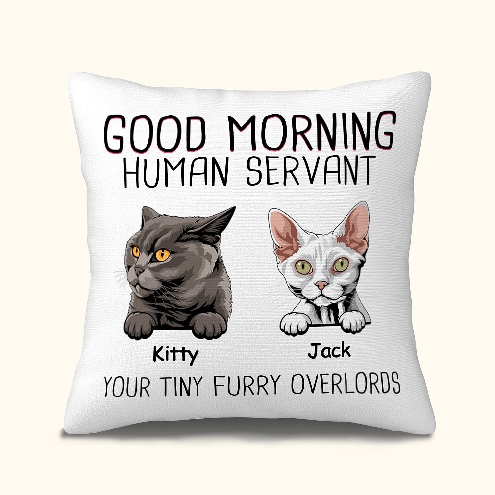 Housse de Coussin Personnalisée avec Nom et Dessin du Chat Décoration à Domicile Cadeau Fête Emménagement pour Famille Amoureux d'Animal de Compagnie