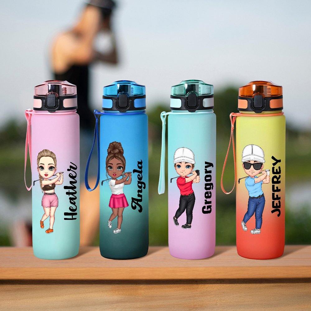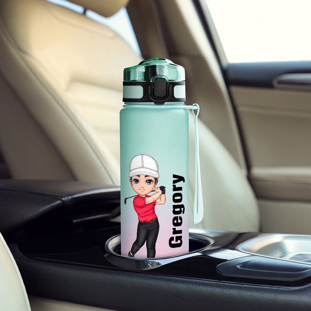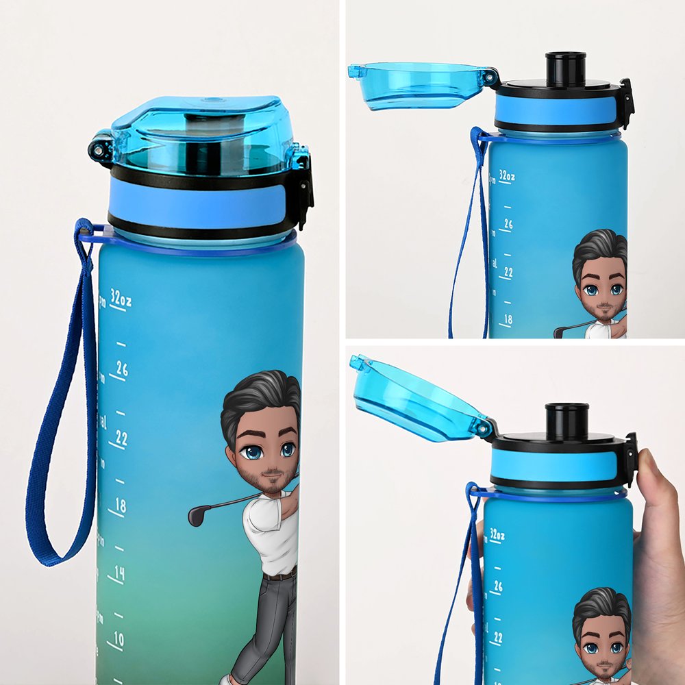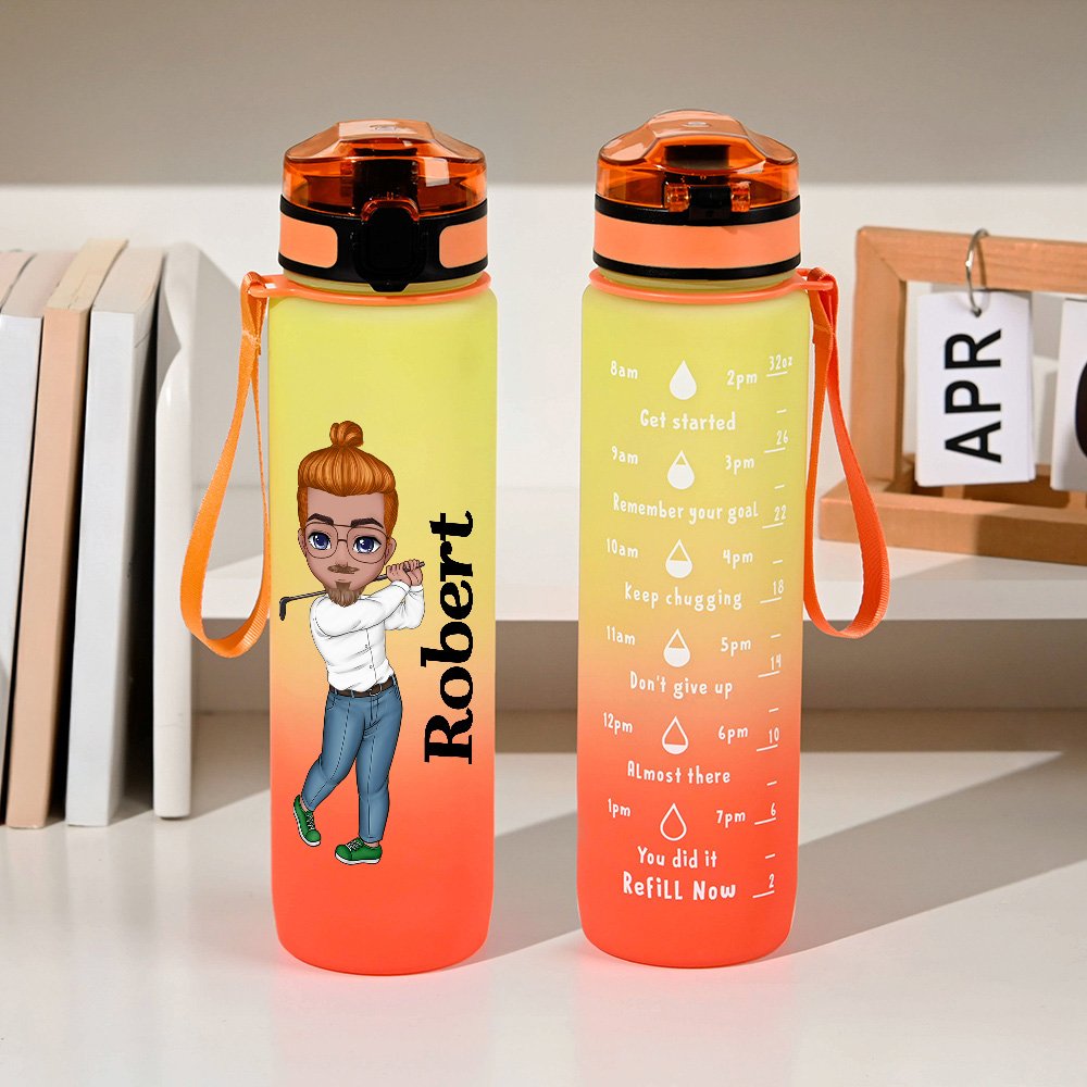 Sa superbe palette de couleurs dégradées lui confère un aspect moderne et élégant. Le personnage de golf en dessin animé ajoute une touche amusante et ludique, ce qui le rend unique. De plus, vous pouvez le personnaliser avec votre nom, ce qui en fait un accessoire unique. L'indicateur de temps sur la bouteille est un ajout brillant. Chaque échelle correspond à la quantité d'eau que vous devriez boire à un moment précis, pour vous rappeler de rester hydraté tout au long de la journée.