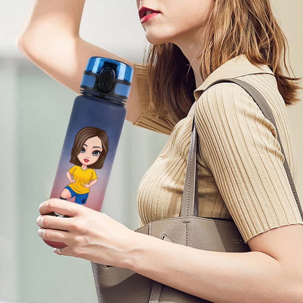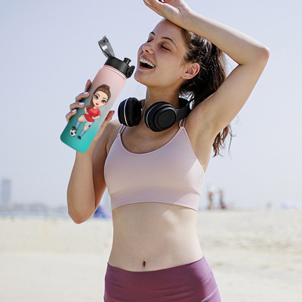 Le dégradé de couleurs est un véritable plaisir pour les yeux, car il offre une transition douce et élégante entre les différentes nuances. Elle fait tourner les têtes et se distingue des bouteilles d'eau ordinaires. Les illustrations de bandes dessinées représentant des footballeurs et des footballeuses débordent d'énergie et de charme. Chaque personnage est représenté dans des poses dynamiques, reflétant l'excitation et la passion du terrain de football.
