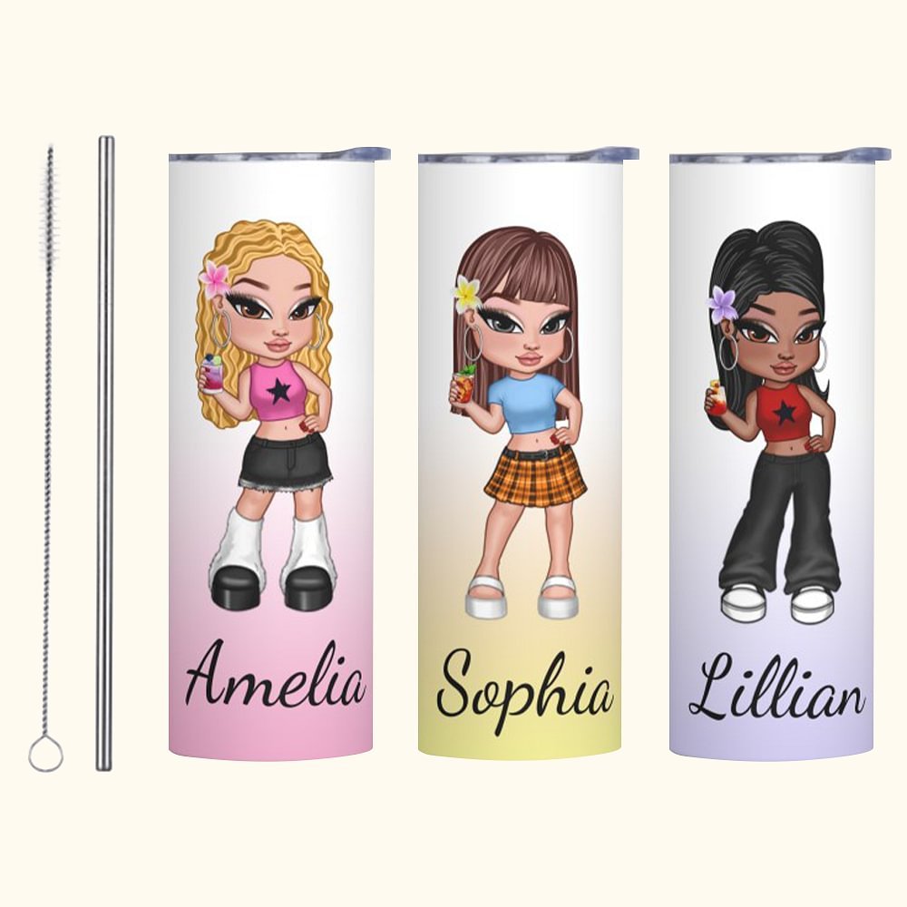 Ce gobelet droit et mince allie style et fonctionnalité, ce qui en fait un choix polyvalent pour vos besoins en boissons. Il est orné d'une image de fille de bande dessinée dans le style de l'an 2000 et comporte un nom personnalisé pour créer un article pratique unique en son genre.