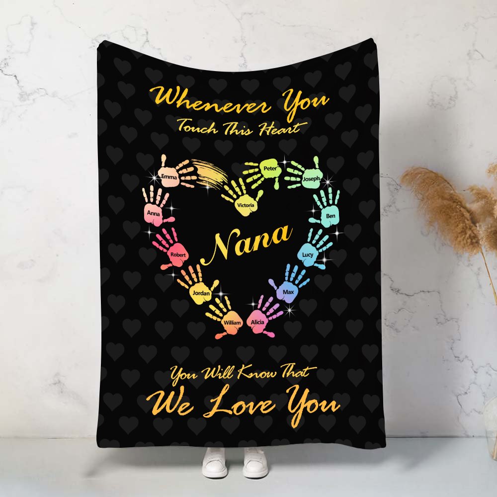 Notre couverture a la forme d'un cœur avec un motif dégradé d'empreintes de mains. Le milieu du cœur peut être personnalisé avec un nom ou un titre, et des empreintes de mains pour représenter chaque membre de la famille dans la maison, ce qui signifie que la famille sera toujours ensemble, unie et aimante pour toujours. Cette couverture s'intégrera parfaitement dans n'importe quelle pièce de votre maison et vous rappellera les merveilleux moments d'unité de votre famille.