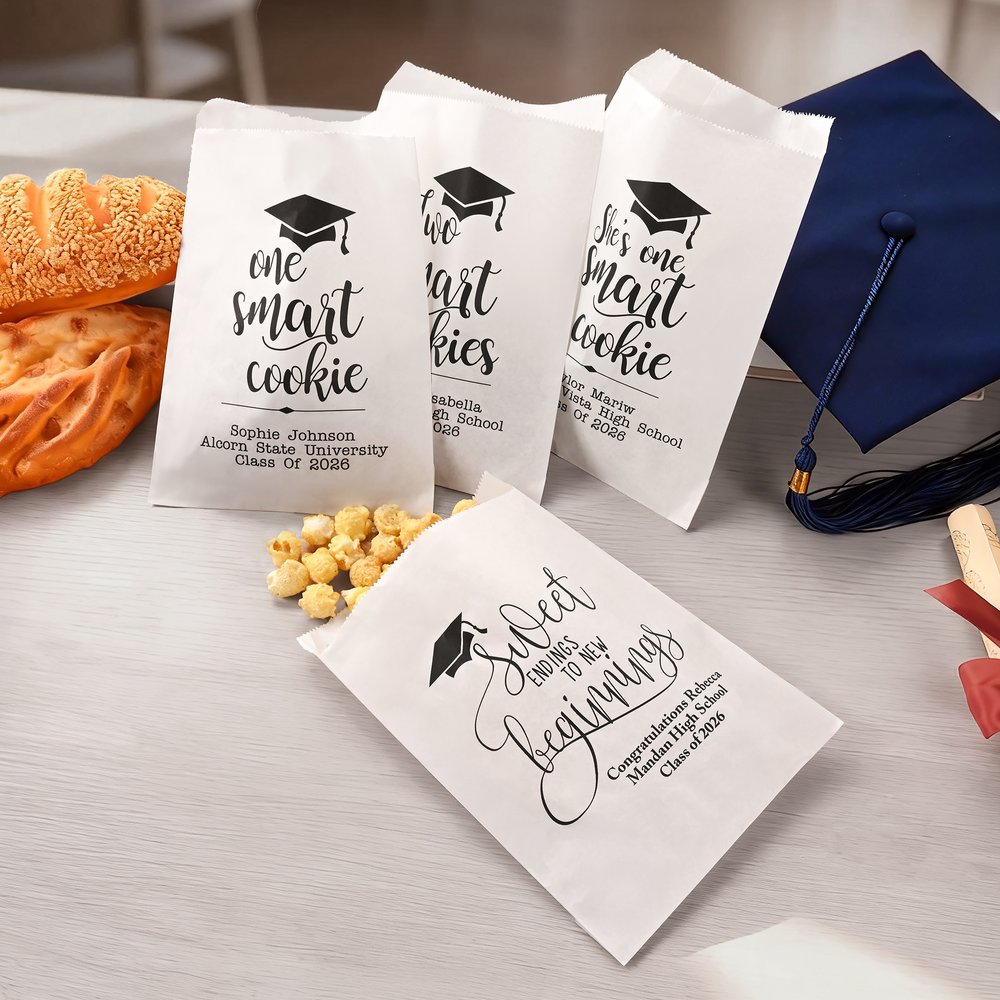 Votre remise de diplôme est une étape importante, et nos sacs à friandises personnalisés sont un excellent moyen de créer des souvenirs durables. Lorsque vos invités recevront ces sacs joliment personnalisés, ils se souviendront de la joyeuse célébration et des réalisations qui vous ont tous réunis. C'est un petit geste significatif qui laissera une impression durable sur vos proches.