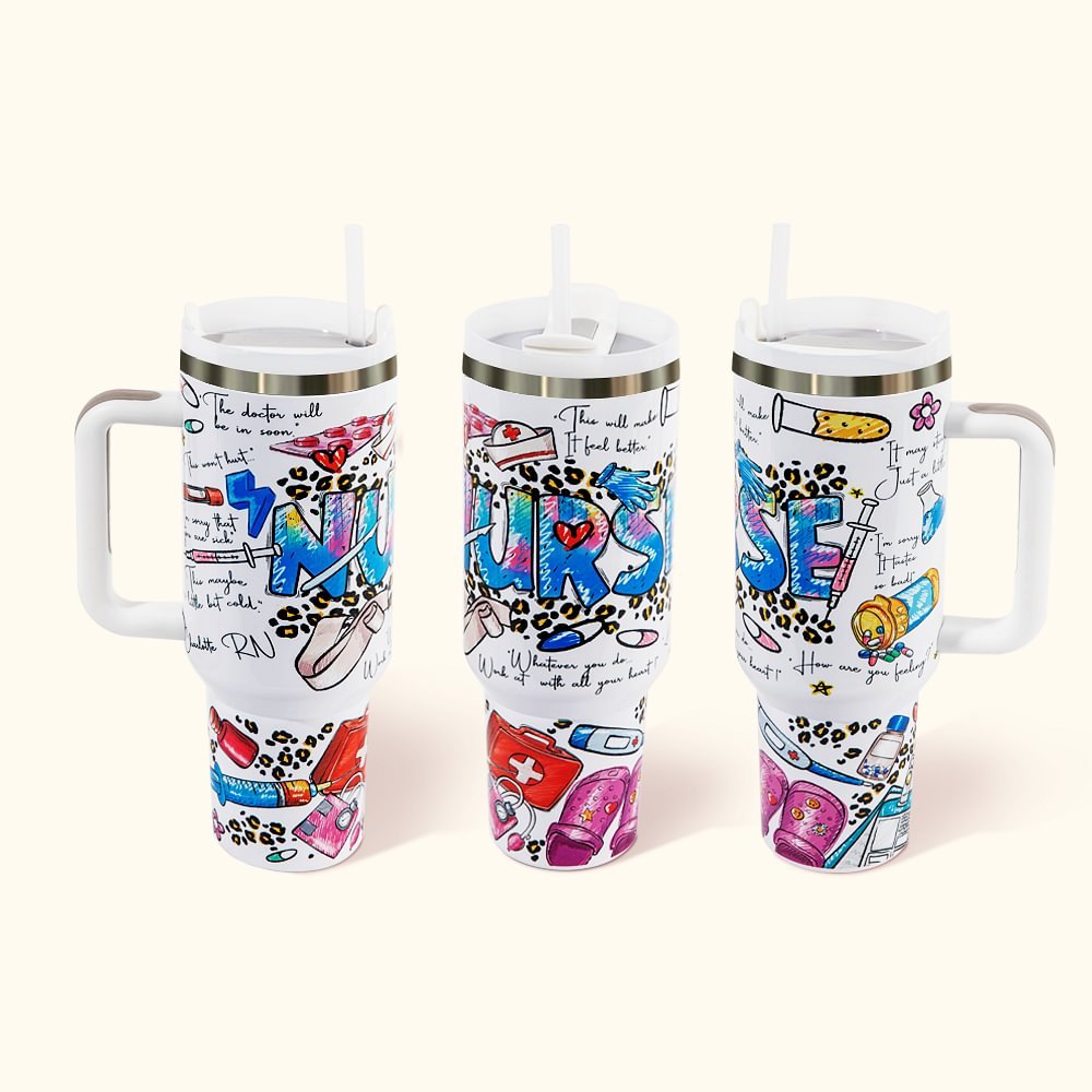 Ce gobelet adopte des éléments vibrants d'inspiration infirmière, principalement basés sur l'esthétique de l'art graffiti, en ajoutant divers motifs d'appareils médicaux et des mots de médecins, et le style de conception est hip-hop, à la mode et ludique. Vous pouvez ajouter le nom de l'infirmière pour exprimer votre respect pour la profession d'infirmière et reconnaître son dévouement désintéressé.
