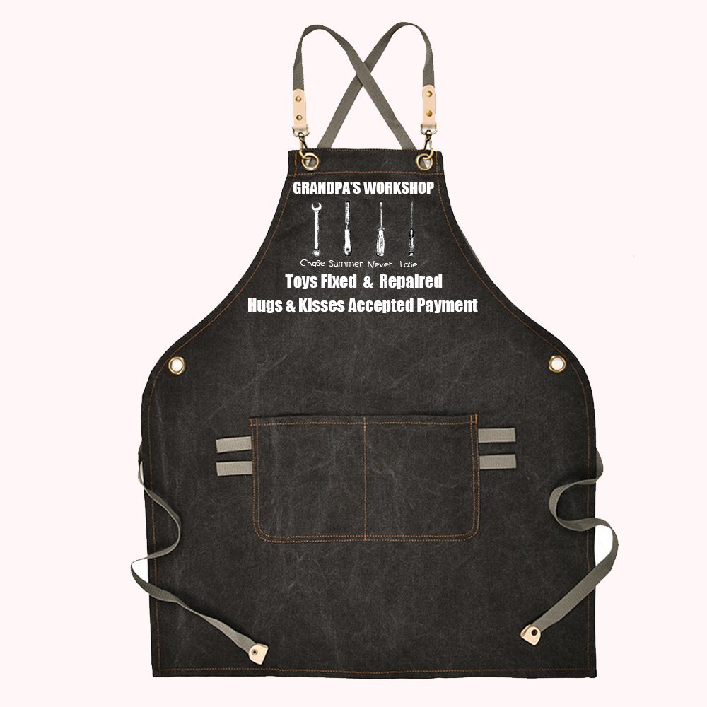 Chaque outil représente un enfant et peut être personnalisé avec jusqu'à huit outils et huit noms d'enfants. Créez un tablier unique avec les noms des membres de la famille, ce doit être un cadeau significatif pour grand-père ou papa.
