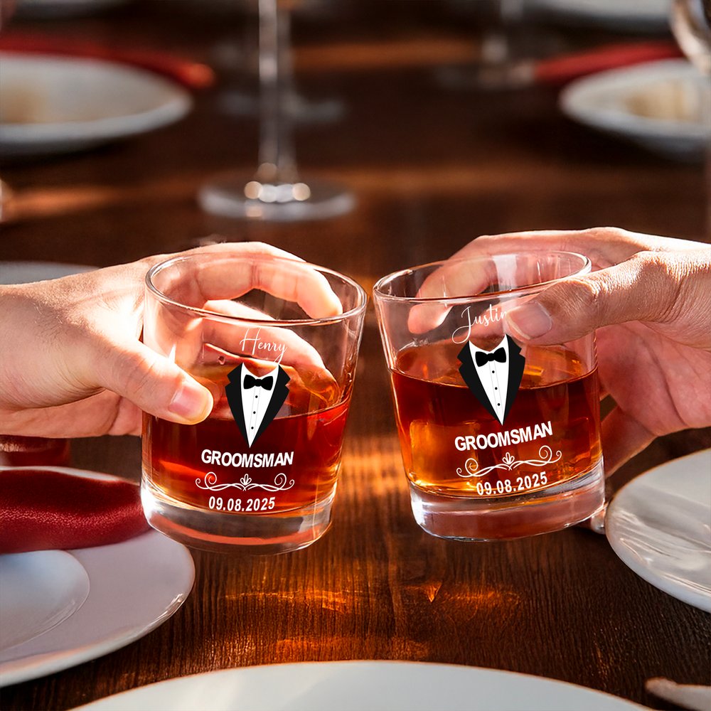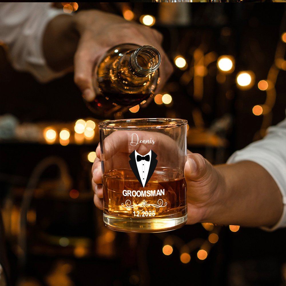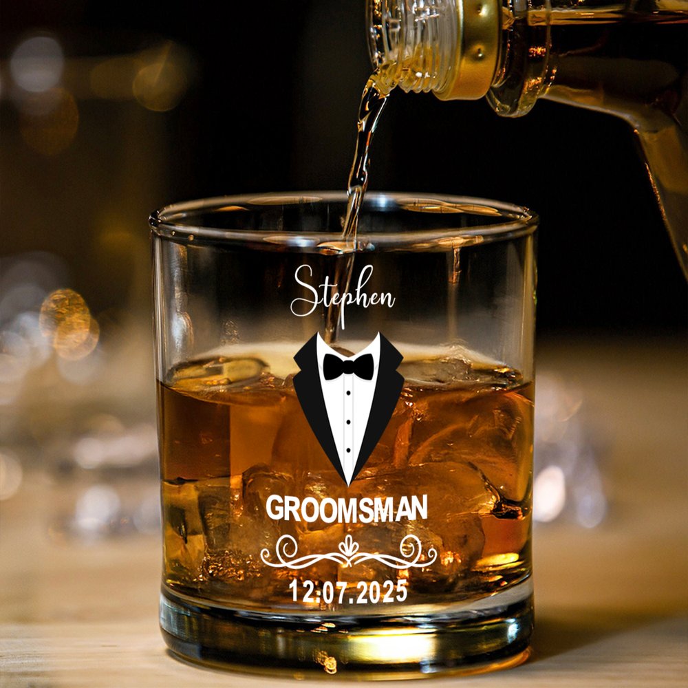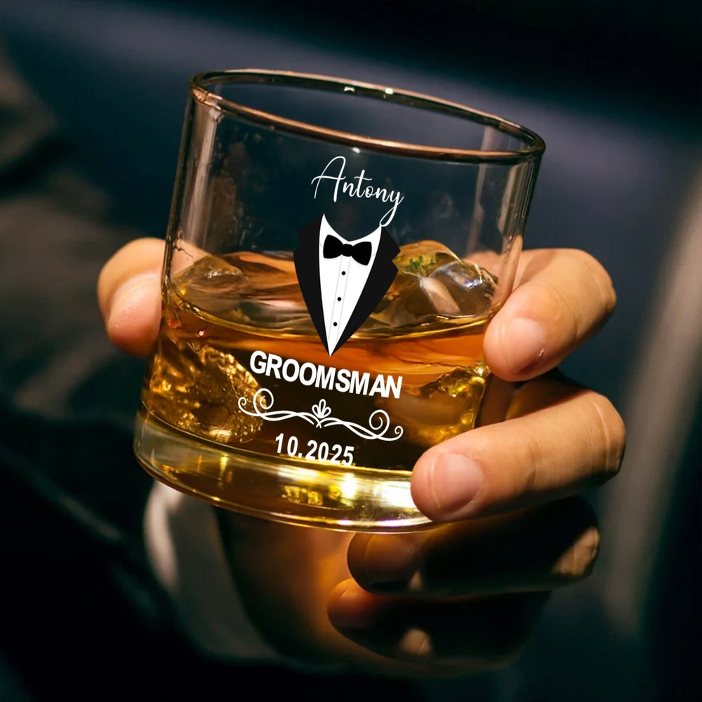 Inspiré par l'élégance d'un mariage formel, ce verre à whisky présente un costume de garçon d'honneur sculpté sur le verre à whisky et peut être personnalisé avec un nom et une date exclusifs. La silhouette minimaliste allie la délicatesse de la cérémonie à la délicatesse des hommes, faisant de ce verre à whisky une commémoration unique pour les grandes occasions.