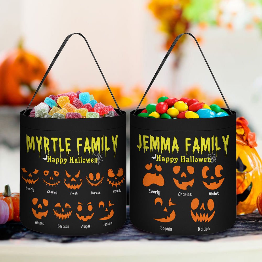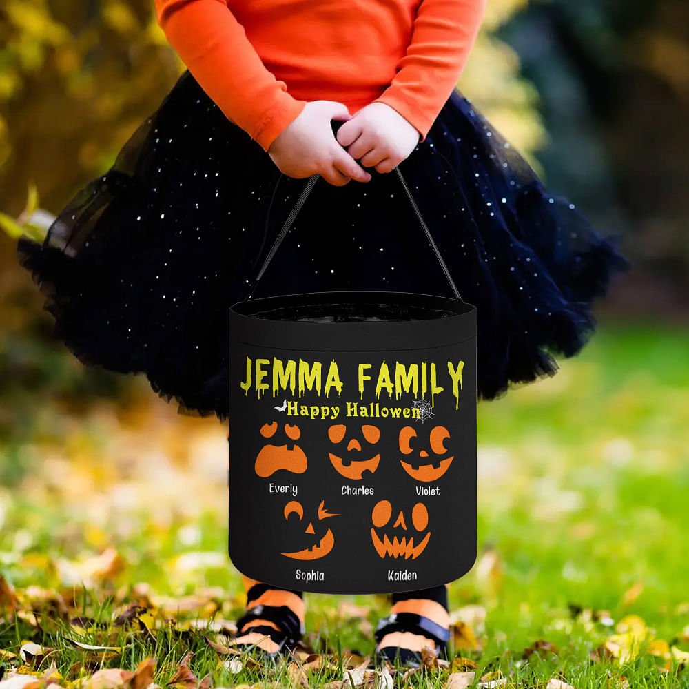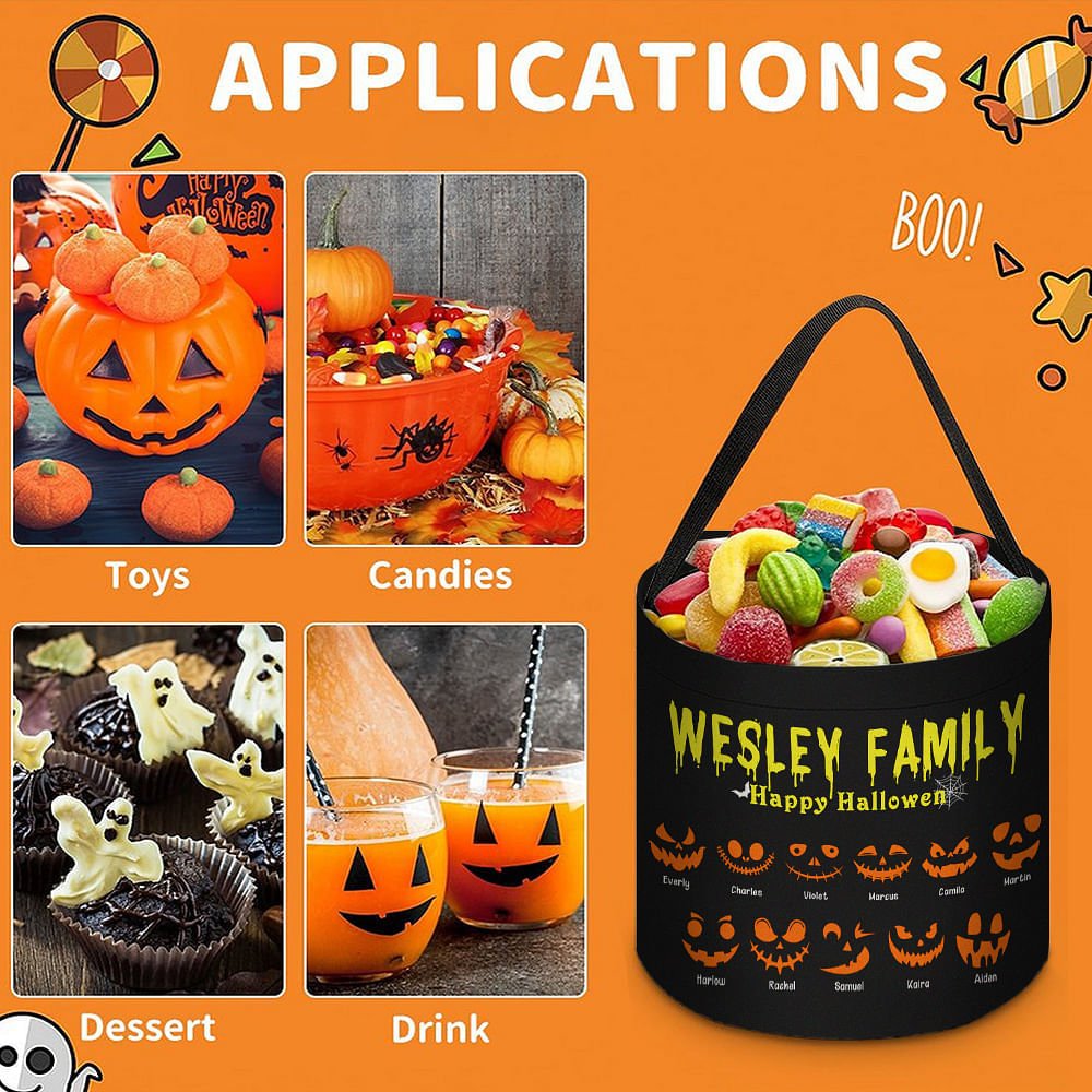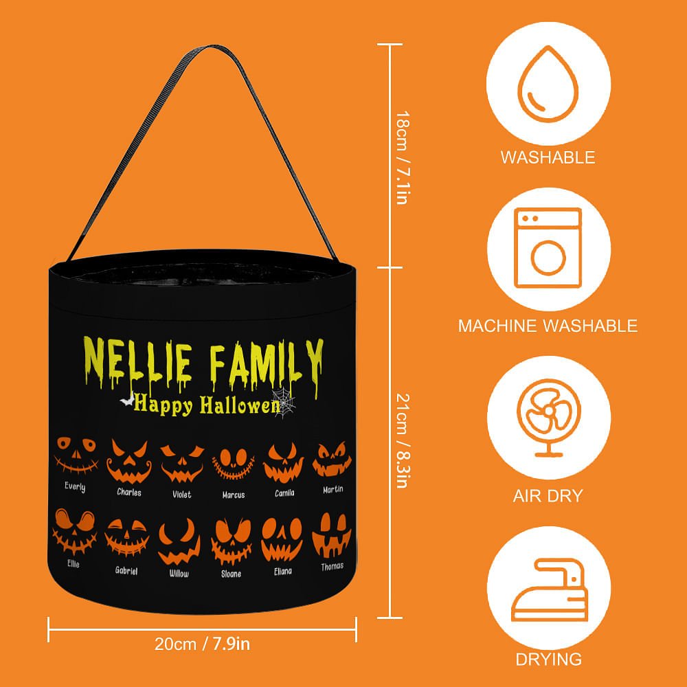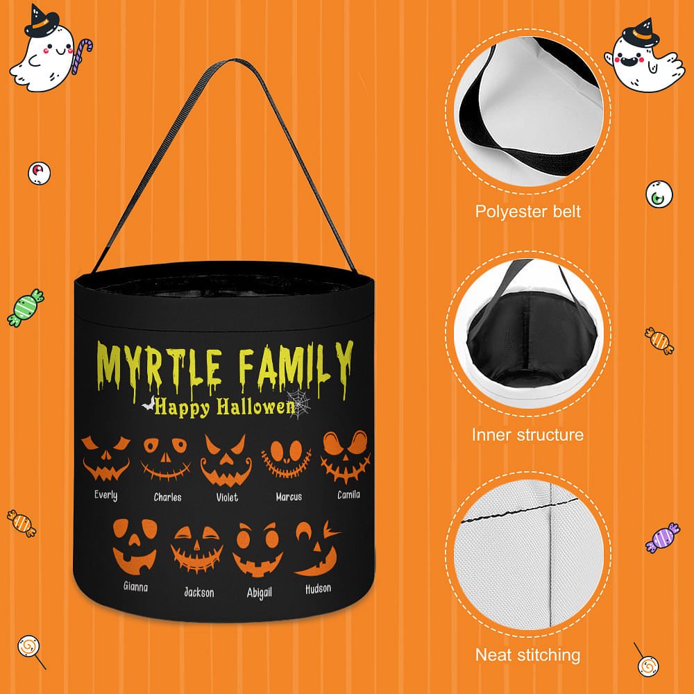 Sac à Bonbons Personnalisé avec 1-12 Noms et Visages de Citrouille Accessoire de Chasse aux Bonbons Cadeau Halloween pour Enfant