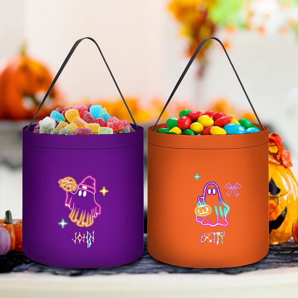 Ce sac à bonbons vibrant est orné de fantômes et de citrouilles néon qui attirent l'attention, dans l'esprit ludique d'Halloween. Son design artistique crée une atmosphère joyeuse pour les fêtes et constitue un accessoire amusant pour la chasse aux bonbons.