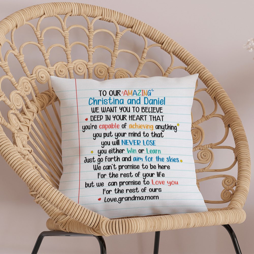 Cette housse de coussin lettre d'amour est non seulement un cadeau parfait pour la fête des mères, la fête des pères, la fête des grands-parents, l'anniversaire du coton, Noël, l'anniversaire pour exprimer votre amour pour votre mère, votre père, vos grands-parents, votre moitié ou vos petits-enfants, mais aussi une idée de cadeau pour tous ceux qui aiment la décoration d'intérieur confortable de haute qualité.