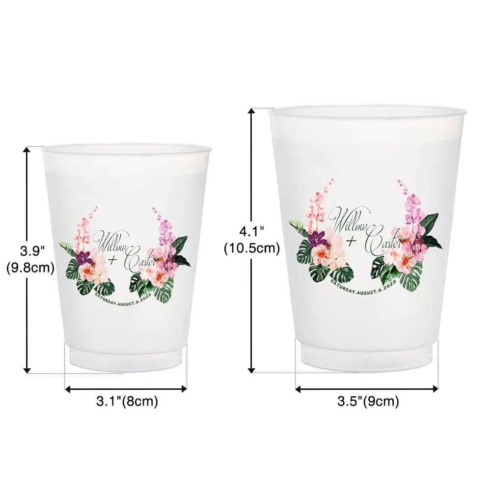 Nos gobelets sont disponibles en deux tailles, ce qui vous donne une certaine flexibilité en fonction de l'occasion. Les gobelets de 12 oz sont idéaux pour les cocktails et les punchs aux fruits, tandis que les gobelets de 16 oz sont parfaits pour les smoothies, les cafés glacés ou toute autre boisson désaltérante. La construction robuste assure une manipulation facile et évite tout renversement accidentel, vous permettant de vous concentrer sur la célébration sans inquiétude.