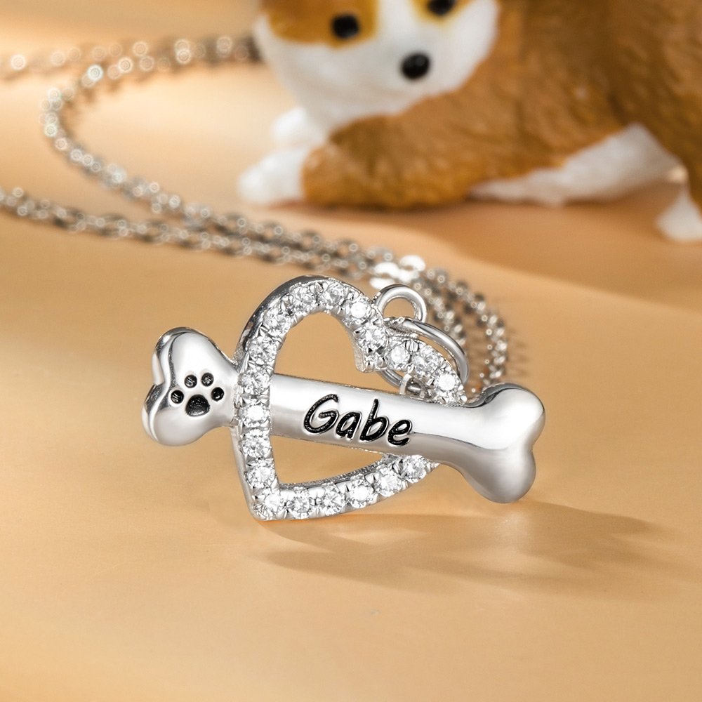 • Ce collier d'os d'animal de compagnie personnalisé en forme de cœur et de nom d'animal de compagnie est disponible en 2 styles, chacun avec une façon différente de le porter, pour exprimer la personnalité, la sophistication et l'humeur en toute occasion. Spécialement conçus pour les amoureux des animaux. Délicat et mignon. La combinaison d'éléments de cœur et d'os d'animal exprime l'émotion sincère entre le propriétaire et l'animal. Venez personnaliser un collier parfait pour vous et votre animal de compagnie qui sera toujours près de votre cœur. C'est pour tous ceux qui aiment les chiens ou les chats.