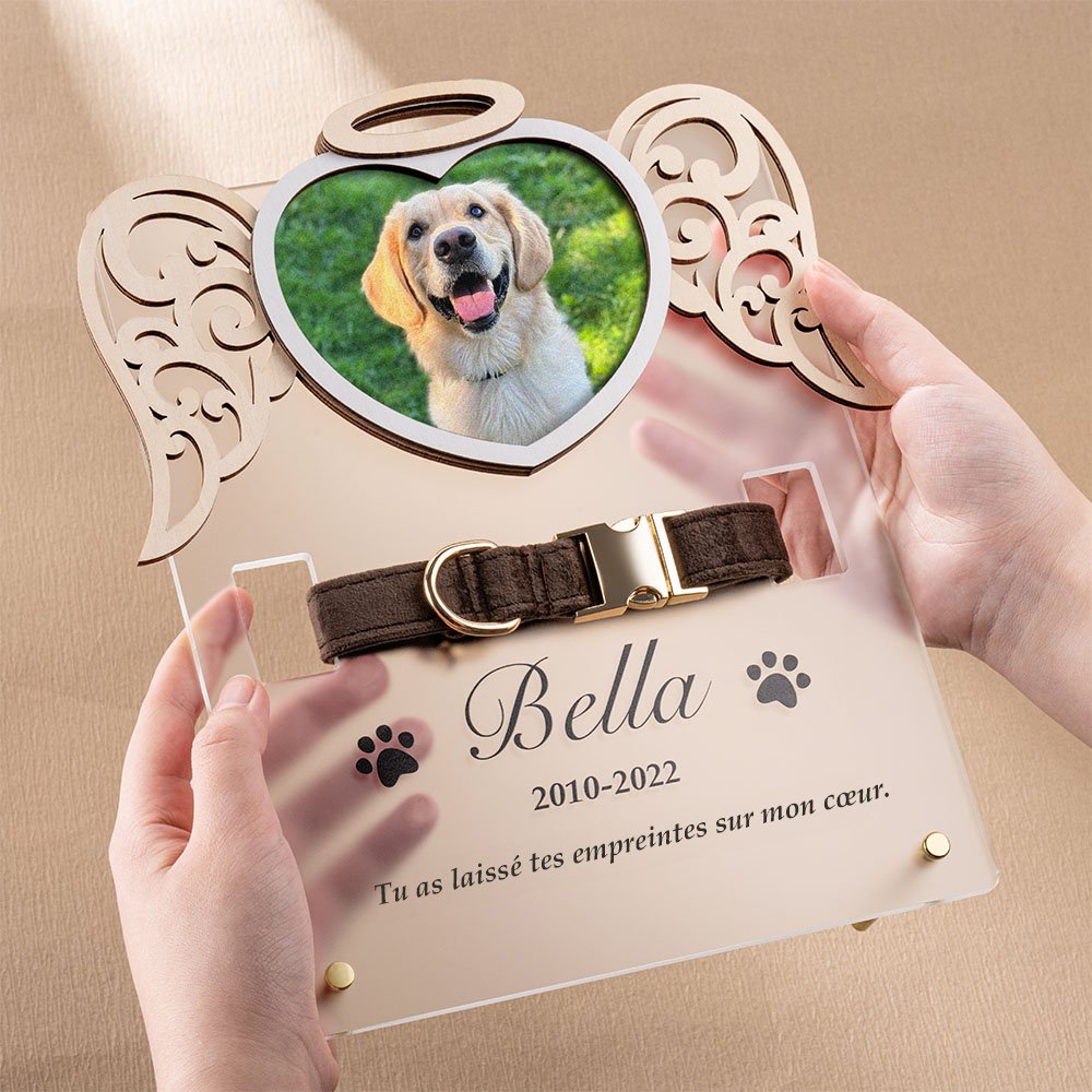 L'ajout d'un cadre dédié au collier rend cet ornement encore plus spécial. Il permet aux propriétaires de conserver le collier de leur animal dans le cadre de l'exposition, ce qui donne l'impression que leur ami à fourrure est toujours à proximité.