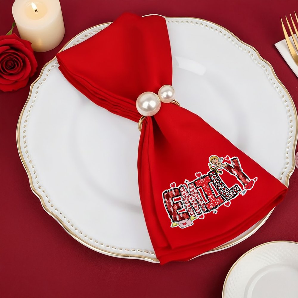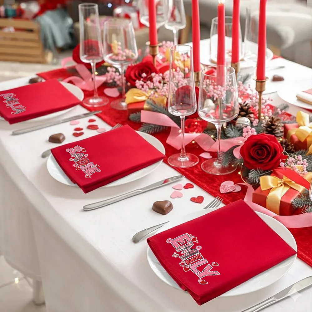 Cadeau idéal pour les couples, les petits amis, les petites amies ou quelqu'un de spécial, ces serviettes de table personnalisées transmettent une affection sincère grâce à leur teinte rouge vif. Les noms personnalisés véhiculent des sentiments cachés, permettant au destinataire de ressentir la prévenance et le romantisme à chaque utilisation.