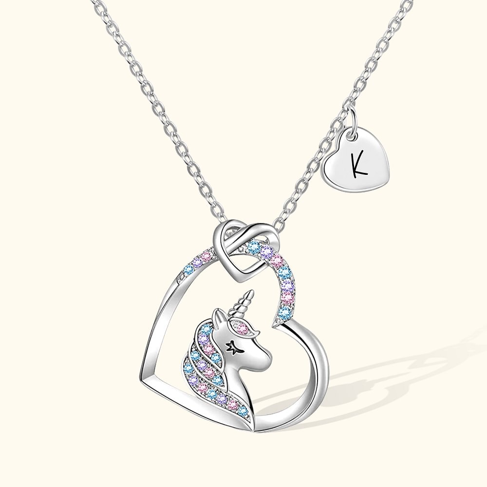 Pendentif en Cœur avec Initiale Personnalisée Collier de Licorne pour Fille Sœur Cadeau Anniversaire Remises des Diplômés