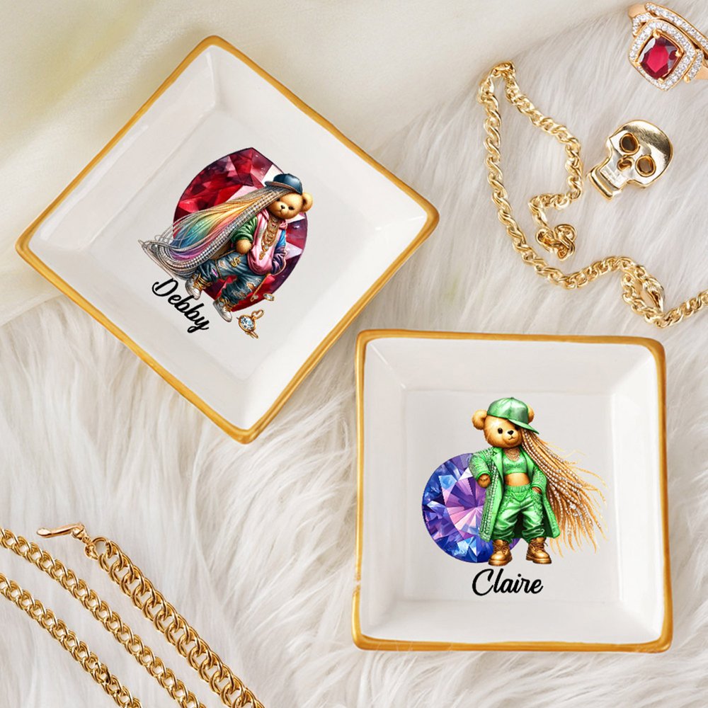 Ces bijoux représentent des ours dans un style hip-hop unique. Associez-les à des vêtements et accessoires inspirés du hip-hop pour un look vraiment unique. Vous pouvez également choisir une pierre de naissance en fonction de votre mois d'anniversaire et ajouter un nom personnalisable pour créer un modèle unique reflétant la personnalité d'une fille hip-hop.
