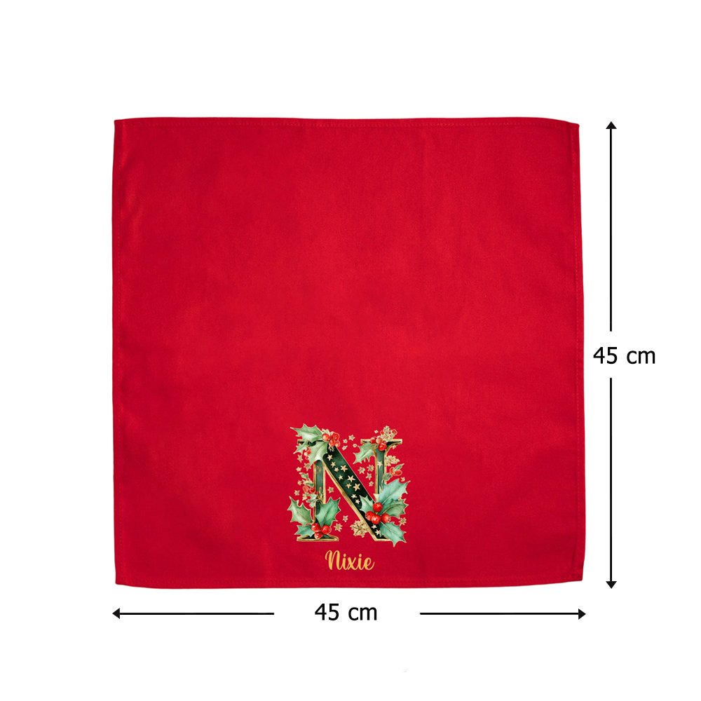 Ces serviettes présentent des initiales et des noms de Noël personnalisables avec du houx et des motifs festifs. Elles transforment votre table de Noël en un espace personnalisé et fantaisiste, ajoutant une touche unique "juste pour vous" à chaque repas.