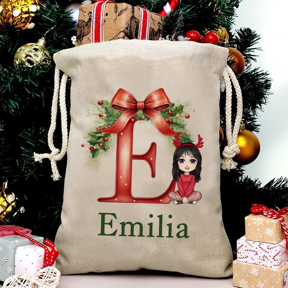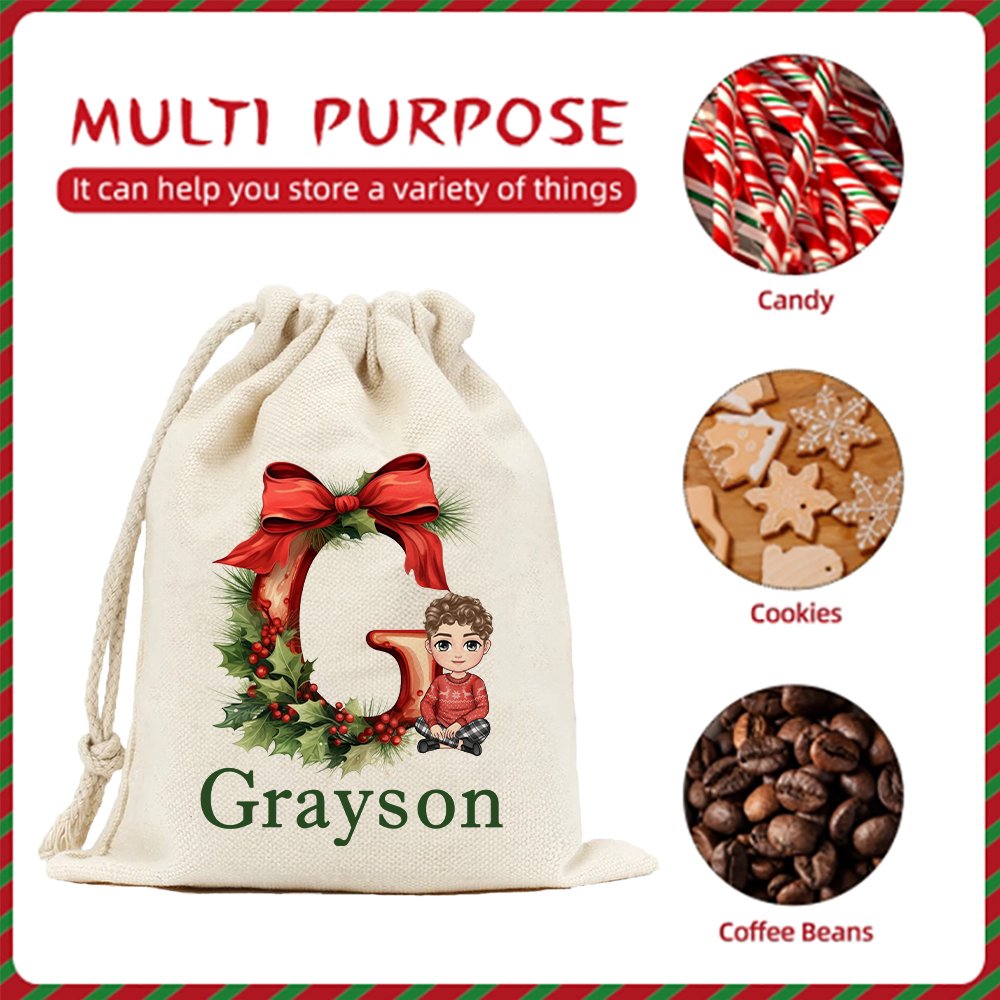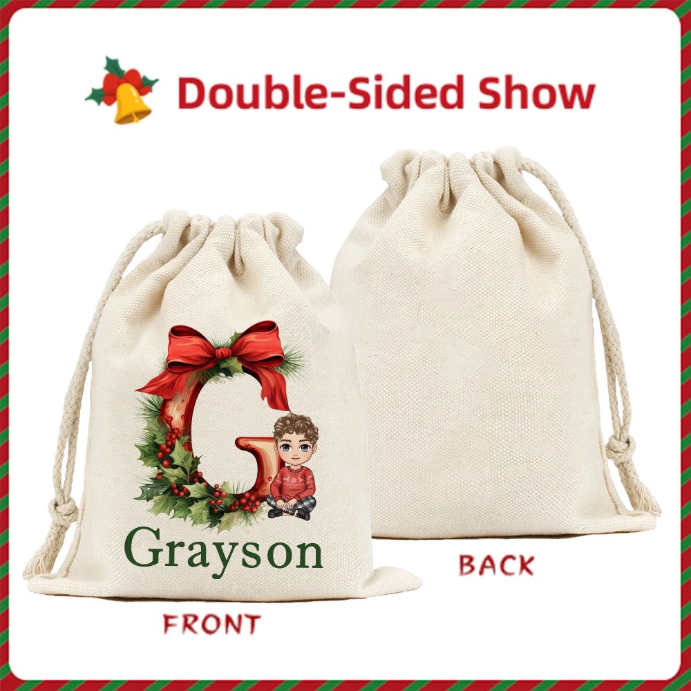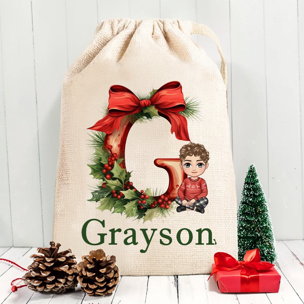 Préparez-vous à rehausser vos cadeaux de Noël avec notre sac de Noël ! Ce sac à cordon capture l'essence de la joie de Noël avec un charmant design orné de feuilles de houx festives, de jolis nœuds et d'adorables clochettes. Vous pouvez également le personnaliser avec les noms et les initiales de vos proches pour que chaque cadeau soit spécial.