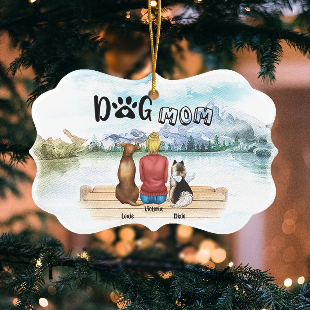 Le message "Dog Mom/Dog Dad" est joliment imprimé sur l'ornement, rappelant les bons moments partagés entre les chiens et leur maître.