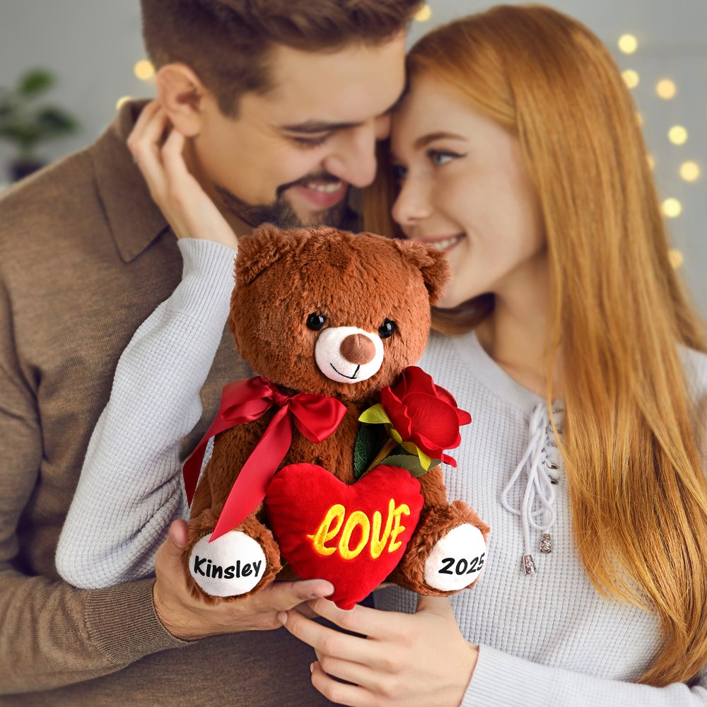 Cette poupée ourson séduit immédiatement par son apparence charmante. Disponible en marron et en blanc, elle s'adresse à des esthètes différents. Orné d'un nœud rouge vif, il ajoute une touche de romantisme. Le cœur rouge qu'il tient étroitement est orné du mot "amour" ou "je t'aime", exprimant l'affection de manière chaleureuse et directe. Vous pouvez personnaliser le texte sur les pattes de l'ours, ce qui en fait un moyen parfait pour exprimer la douceur et le romantisme. De plus, vous pouvez l'accompagner de roses pour renforcer le caractère romantique du geste.