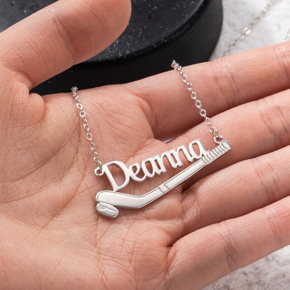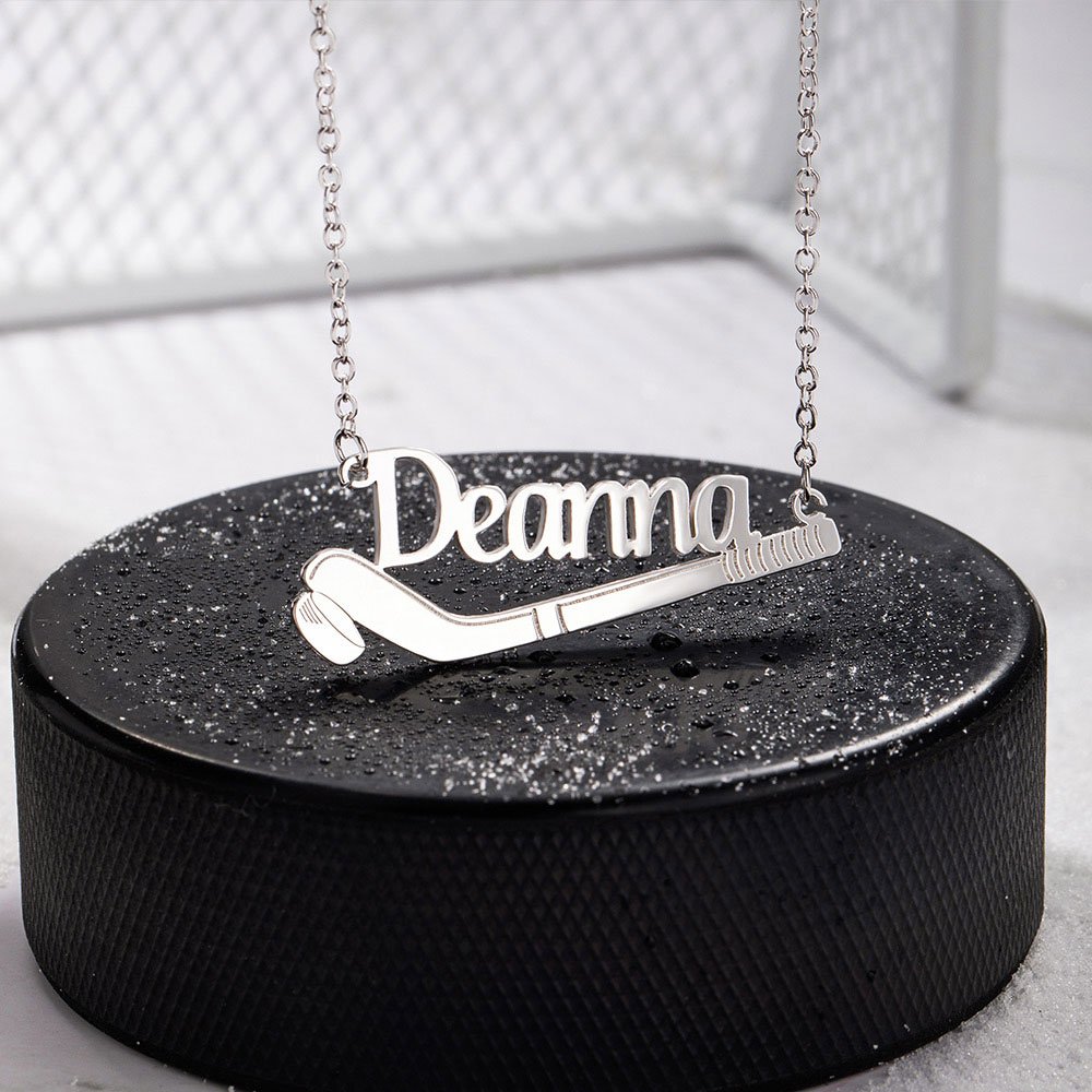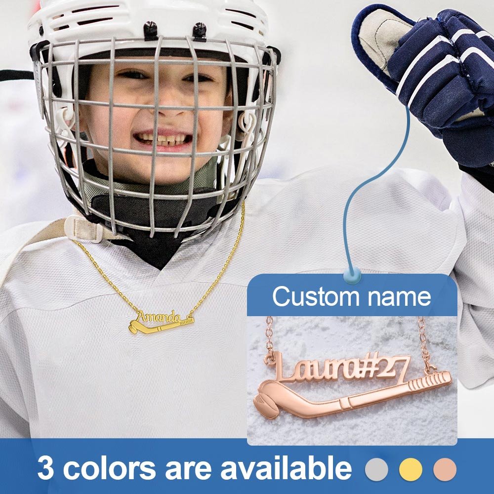 Conçu avec la forme d'un bâton de hockey sur glace et le nom ensemble pour que vos meilleurs amis et votre famille soient surpris par cette pièce de bijou cadeau. Vous pouvez personnaliser les numéros ou les noms des équipes pour le rendre spécial. C'est l'occasion d'un anniversaire, d'une fête ou d'une autre occasion spéciale pour le joueur de hockey dans votre vie.