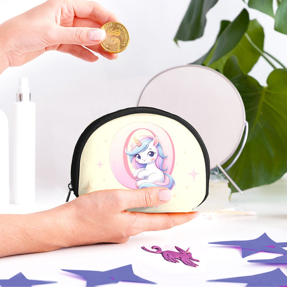 Ce charmant porte-monnaie est orné d'une mignonne licorne fantaisiste et d'une initiale en dégradé. Il est décoré d'étoiles scintillantes, créant ainsi un univers enfantin que les enfants adorent. Vous pouvez y ajouter le nom de votre enfant, ce qui lui confère un sentiment particulier et lui permet d'exprimer sa personnalité tout en transportant ses trésors.