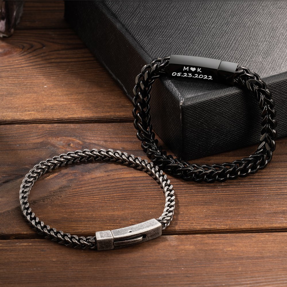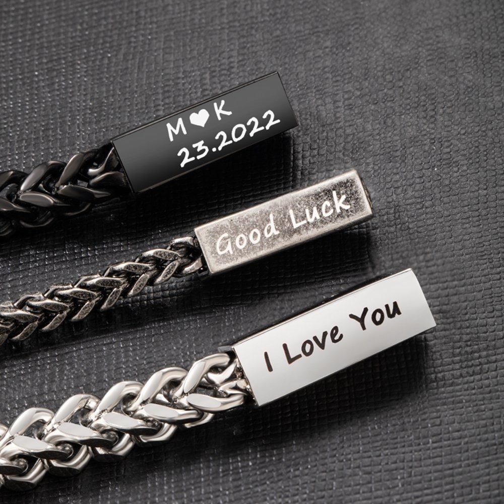 Ce bracelet à maillons en acier titane gravé pour homme est simple et élégant. Il convient aux vêtements de tous les jours et aux activités de plein air telles que les voyages, les fêtes et les occasions formelles. Le style est à la mode et plein de texture, montrant le charme unique des hommes. Cadeau idéal pour lui/père/grand-père/mari/petit ami ou toute autre personne importante pour la Saint-Valentin, Thanksgiving, Noël, anniversaire, etc.