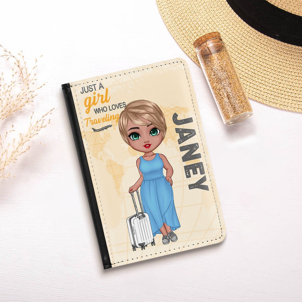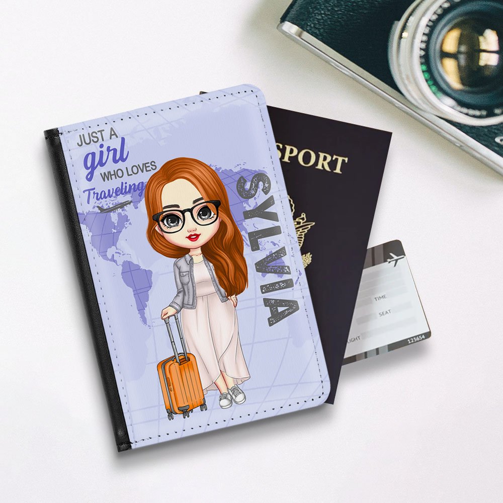 La phrase "JUST A girl WHO LOVES Traveling" est imprimée sur la couverture de notre passeport, ce qui exprime une fille passionnée par les voyages. N'oubliez pas de profiter des merveilleux voyages grâce à notre couverture de passeport !