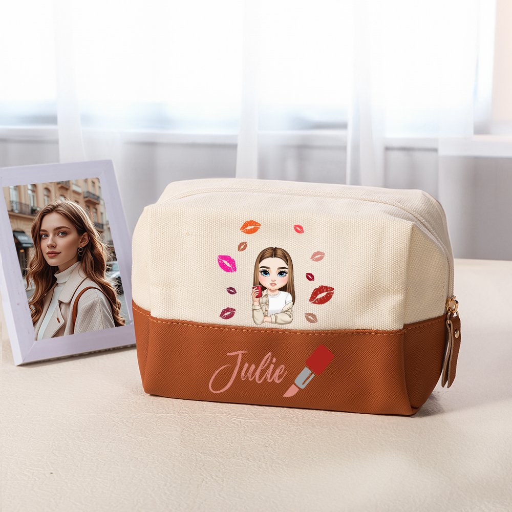 Sac de Maquillage de Grande Capacité Personnalisé avec Nom et Image de Femme Accessoire pour Utilisation Quotidien Voyage Cadeau pour Femme Fille