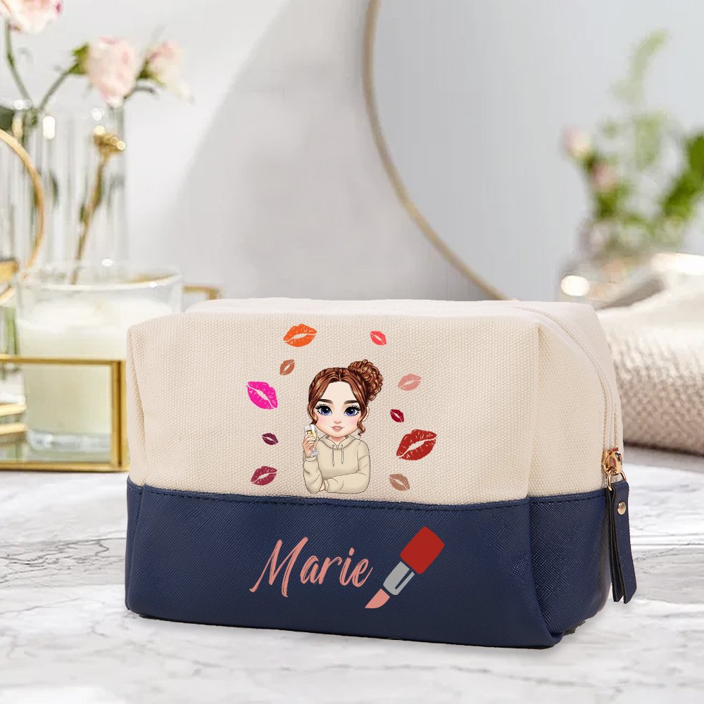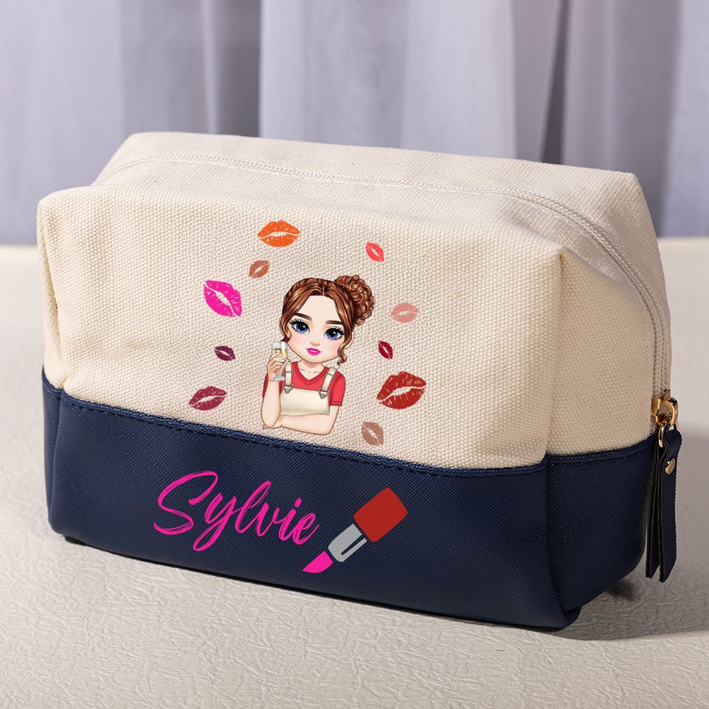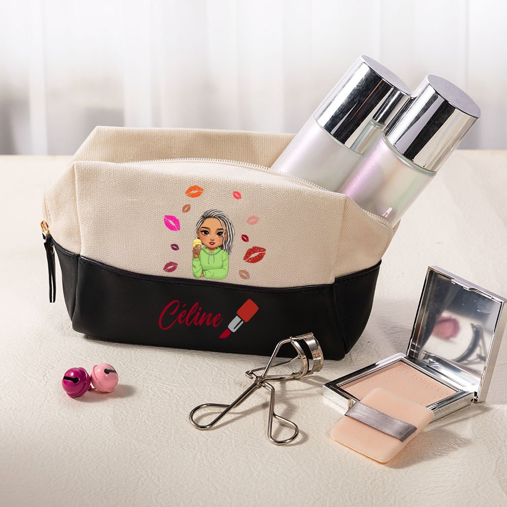 Sac de Maquillage de Grande Capacité Personnalisé avec Nom et Image de Femme Accessoire pour Utilisation Quotidien Voyage Cadeau pour Femme Fille