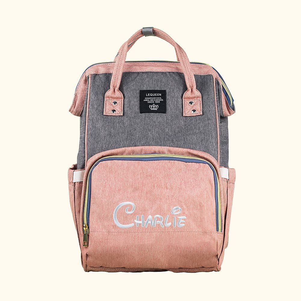 Le prénom peut être brodé sur le devant du sac à dos, qui peut être le prénom de la maman ou le prénom du bébé. Le savoir-faire de la broderie est exquis et les points sont fins.
