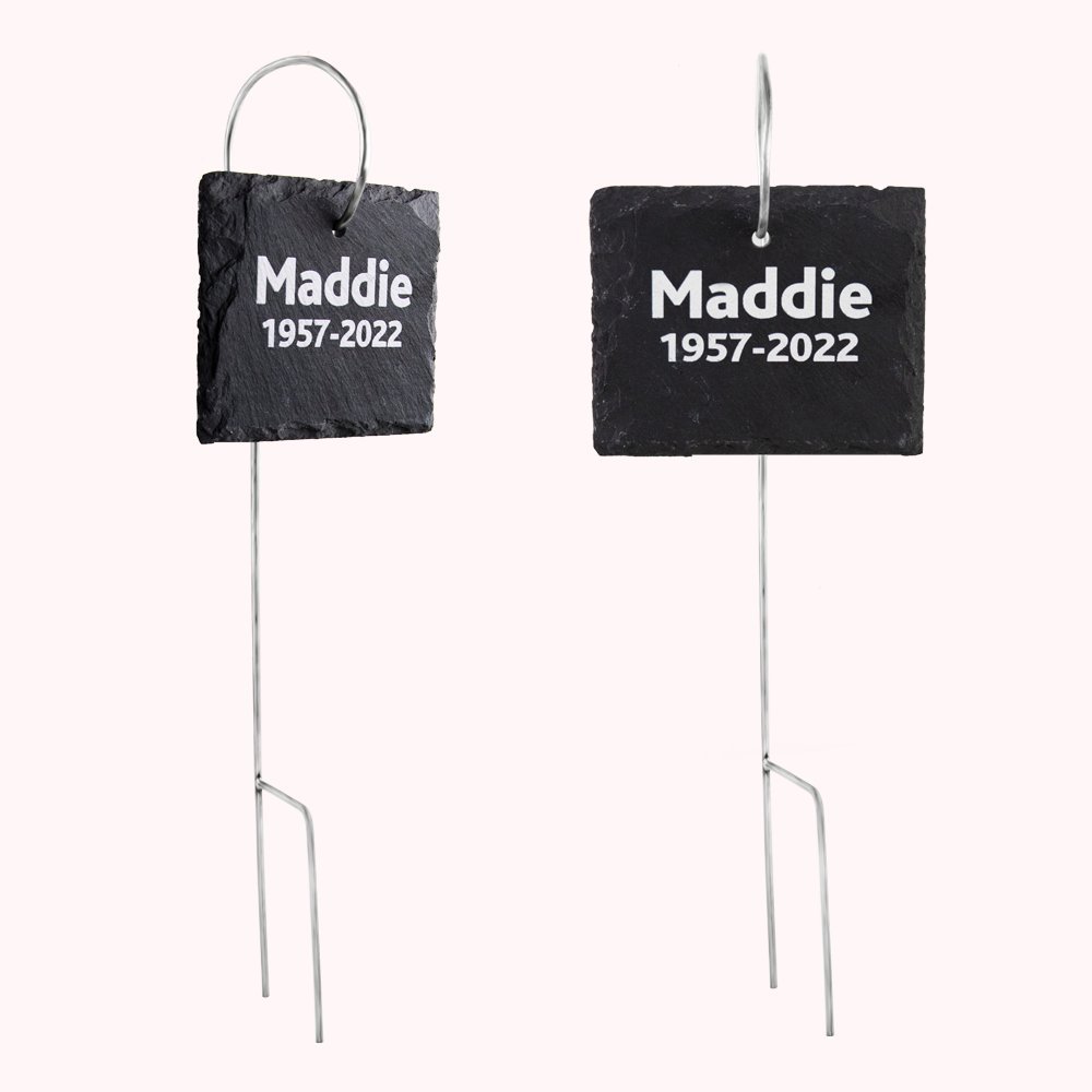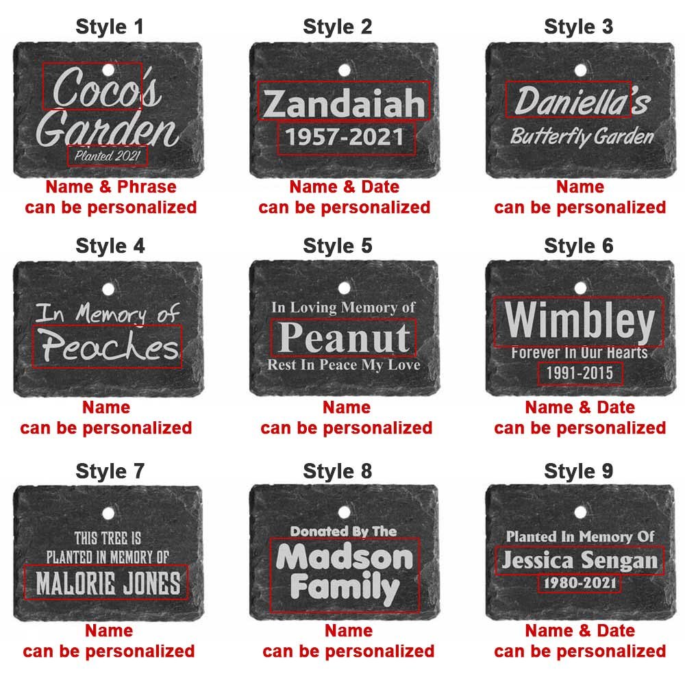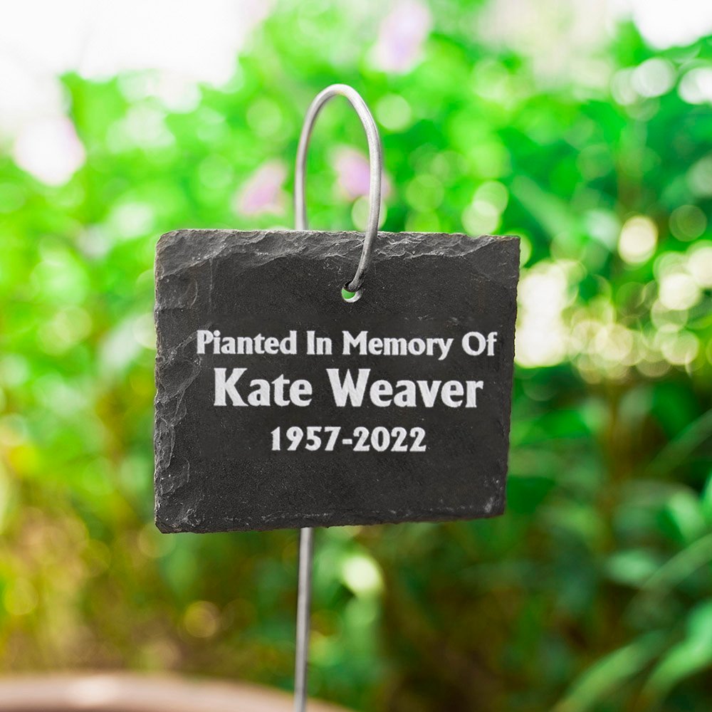 Utilisez nos plaques d'ardoise gravées au laser avec un texte personnalisé pour classer les plantes cultivées dans votre jardin en souvenir affectueux de l'être aimé, pour dédier un arbre, pour honorer une fleur, ou de toute autre manière que vous souhaitez exprimer dans votre jardin.