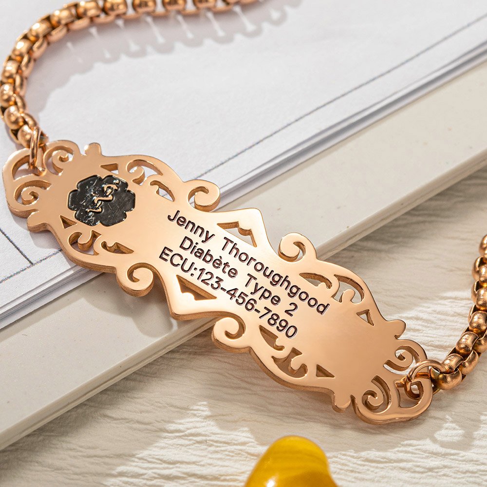 Le bracelet d'alerte médicale personnalisé est la combinaison parfaite de la sécurité et du style. Ces bracelets sont fabriqués en acier inoxydable, en laiton ou en argent sterling de haute qualité. Vous pouvez choisir le matériau qui vous convient. En plus d'être élégants, ces bracelets sont utiles en cas d'urgence.
