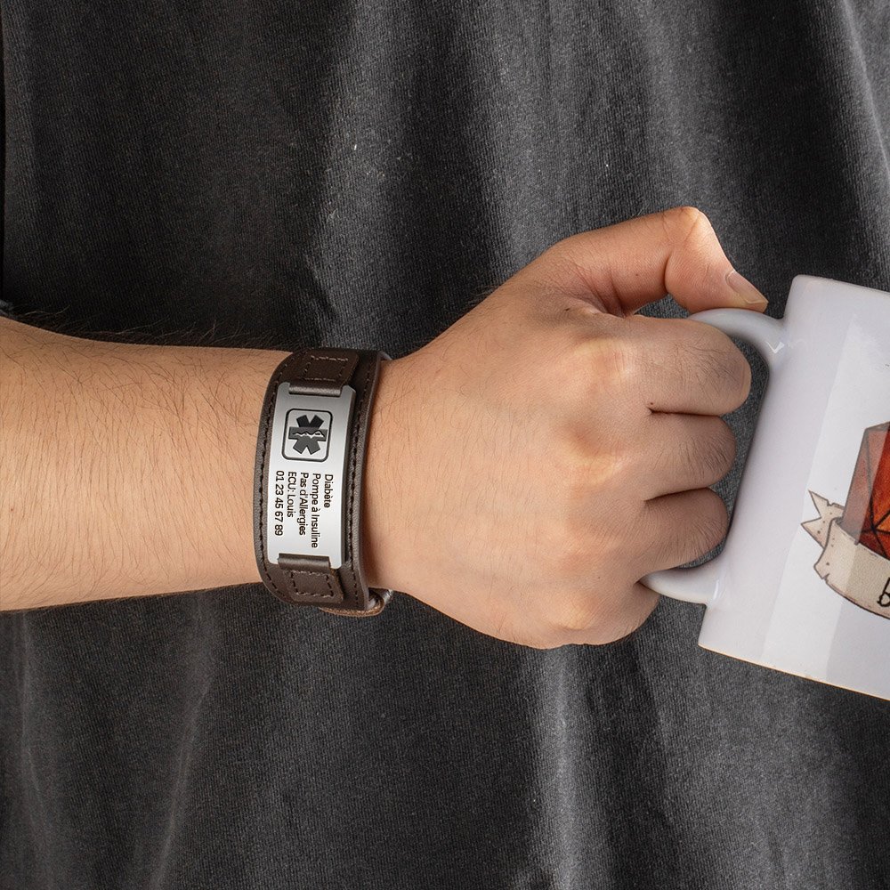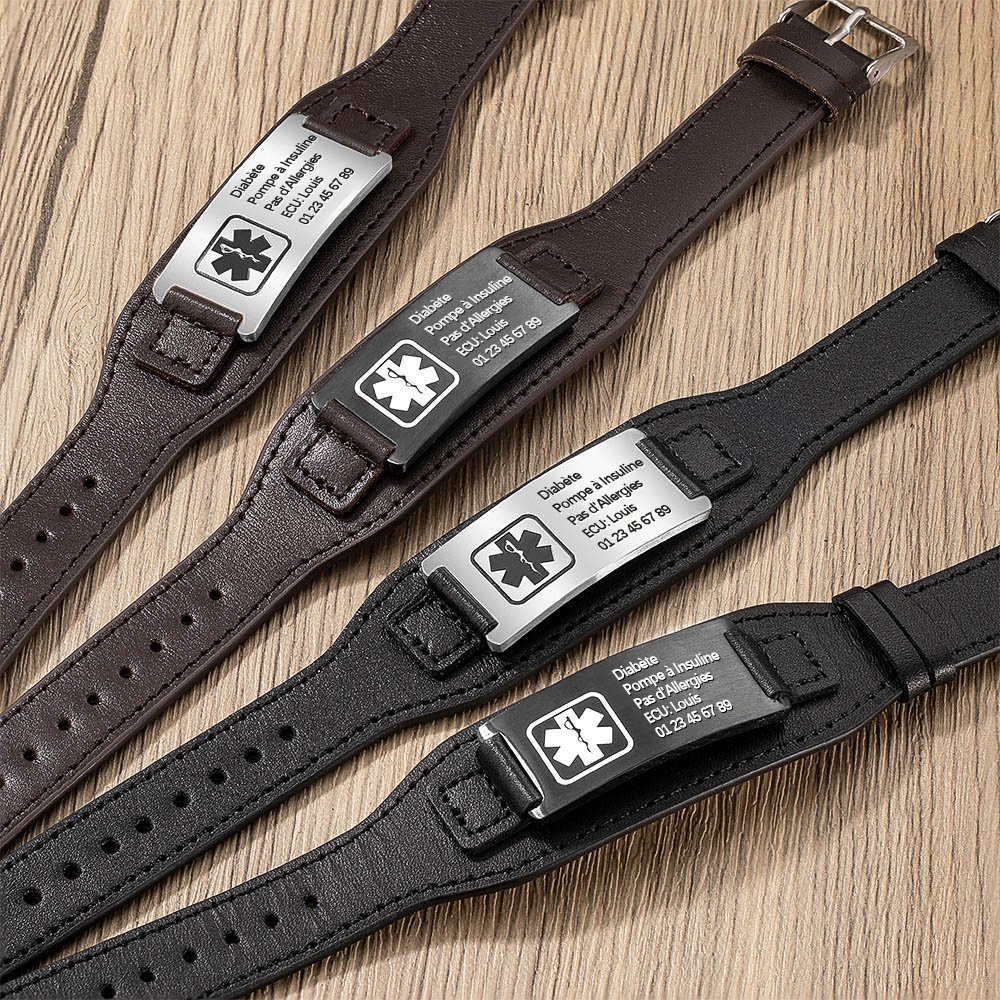 Le bracelet en cuir de ce bracelet d'alerte médicale est conçu pour être réglable, ce qui lui permet de s'adapter confortablement à la plupart des poignets. Cette caractéristique en fait un cadeau idéal, car elle élimine la difficulté de trouver la taille idéale.