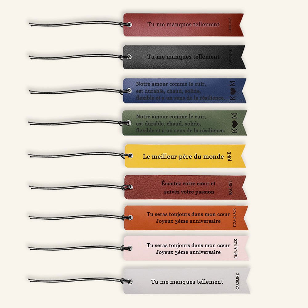 Ce marque-page en cuir fabriqué à la main comporte un message gravé personnalisé, ce qui en fait un cadeau unique et attentionné pour l'amateur de livres de votre vie. (DURABLE ET ÉLÉGANT) : Fabriqué en cuir de haute qualité, ce marque-page est conçu pour durer et accompagnera les livres préférés de votre destinataire pendant des années. (DESIGN POLYVALENT) : Le design classique et minimaliste de ce marque-page s'adapte à un large éventail de couvertures de livres et de styles personnels, ce qui en fait un accessoire pratique et esthétique pour tous les lecteurs. (IDÉAL POUR TOUTES LES OCCASIONS) : Qu'il s'agisse d'un anniversaire, d'une remise de diplôme ou de tout autre événement spécial, ce marque-page en cuir personnalisé est le cadeau idéal pour l'ami, le membre de la famille ou le collègue de votre vie qui aime les livres.