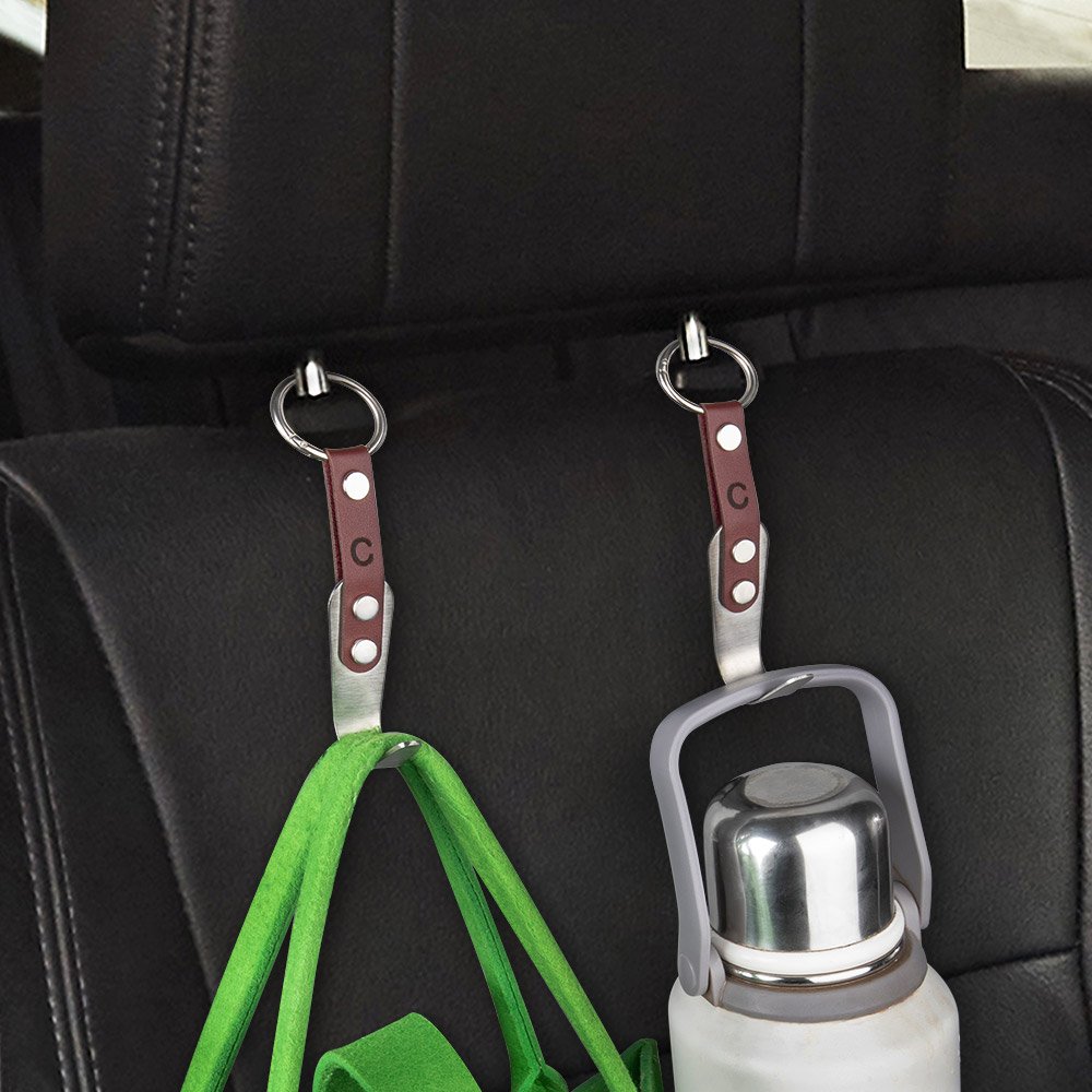 Fabriqué en cuir de haute qualité et en acier inoxydable, notre crochet d'appui-tête est conçu pour durer. La sangle en cuir garantit qu'ils sont suffisamment SOUPLES pour s'accrocher en douceur le long de n'importe quel type de siège et tomber directement vers le bas. En cas de freinage brusque ou de virage pendant la conduite, tous les objets ne tomberont pas de votre siège arrière et ne rouleront pas dans votre véhicule.