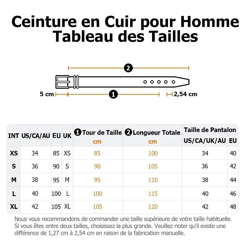| Soins: | - Essuyez régulièrement la ceinture à l'aide d'un chiffon doux et légèrement humide afin d'éliminer toute saleté ou débris. Évitez d'utiliser des produits chimiques agressifs ou de l'eau en excès, car ils risquent d'endommager le cuir. Si nécessaire, vous pouvez utiliser un nettoyant doux pour cuir spécialement conçu pour les ceintures. |